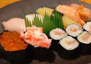 海のない長野県ですが、高速道路ができた今は、東京や日本海から新鮮なネタがすぐに来るので、美味しい魚が食べられます。 霜降り牛肉のように見えて「これが本当にマグロ?」と思わせる最高のトロや、写真のプリプリの甘エビ。吸い物や、天丼なども美味しいです。【2011年11月 市民記者 松尾】