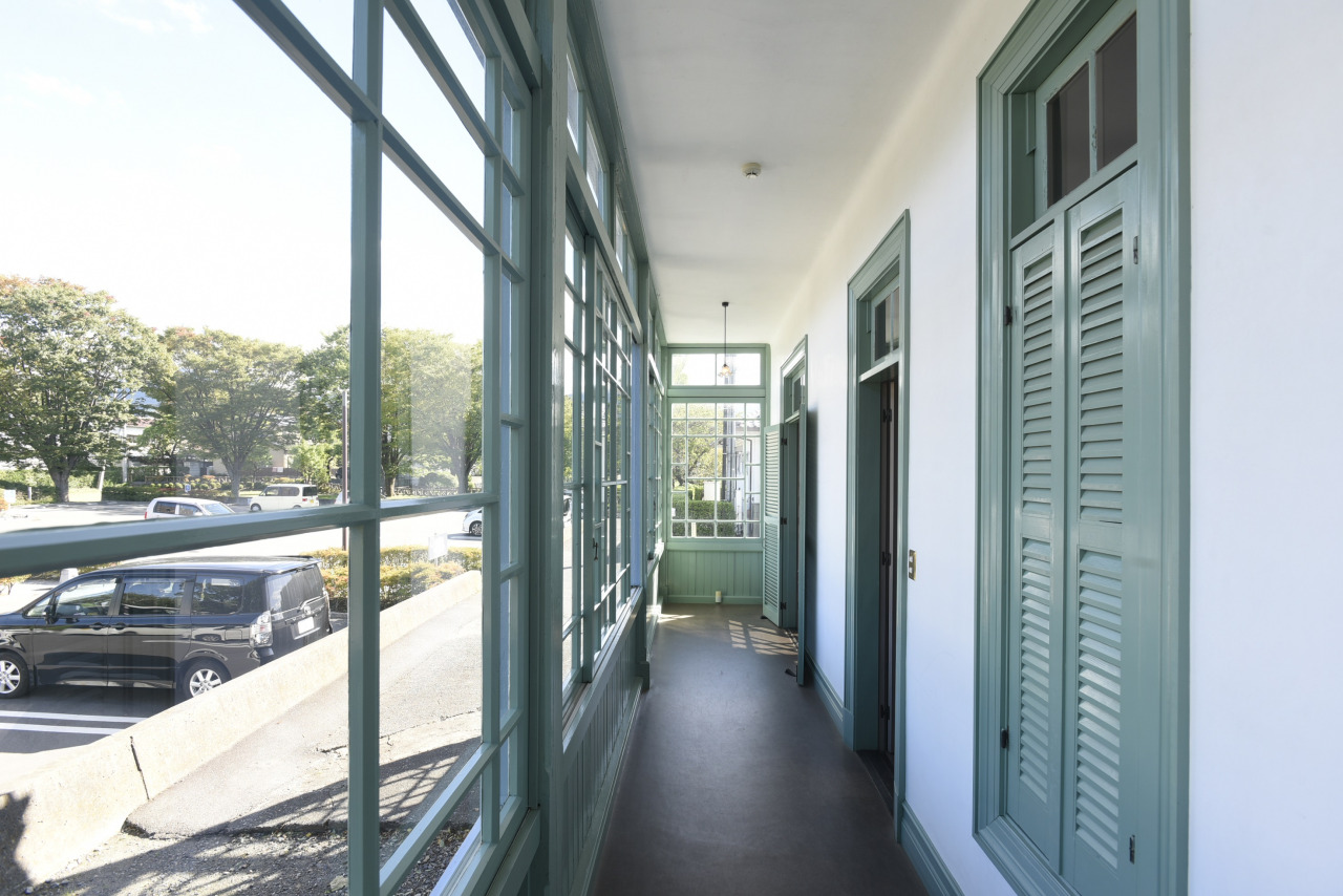 外壁は下見板張りで、水色のペンキと縦長の鎧戸、ガラス張りのベランダが目を引きます。館内に足を踏み入れると、真っ白な壁と天井に囲まれた空間が広がり、明治時代の洋風建築がもつ重厚感と優雅さが、130年以上の時を経てもなお息づいています。異郷からやってきた神父が松本でどのような時間を過ごしたのか想像をめぐらせることができます。