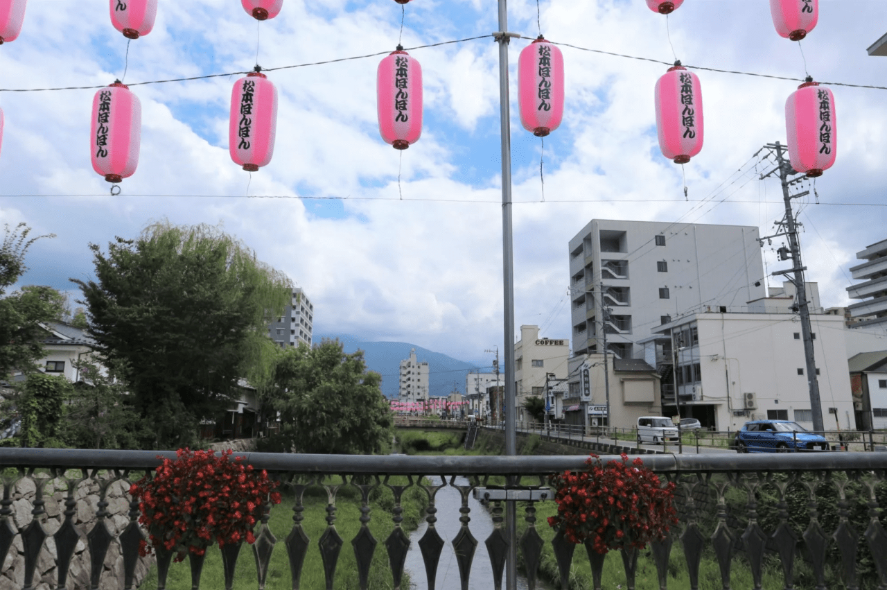 千歳橋は、松本駅から松本城へ向かう途中に架かる橋で、歴史ある町の往来を今に伝えています。江戸時代には周囲の町屋や商家とともに町の生活を支え、近代に入っても橋としての役割を果たしてきました。女鳥羽川や縄手通りを望む立地から、映画やドラマのロケ地としても利用され、橋の存在が地域の風景や文化の一部として親しまれています。