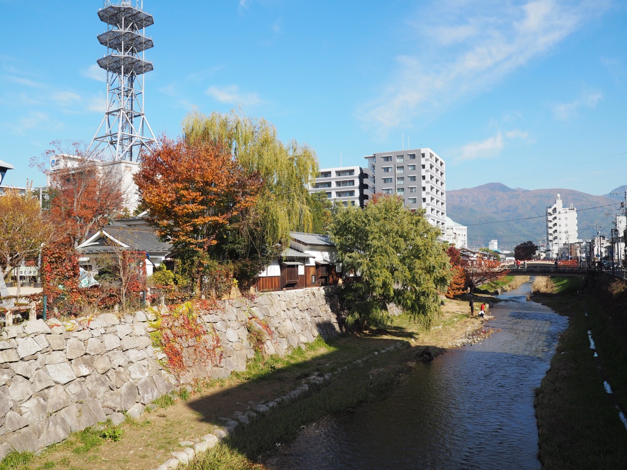 美ヶ原の峰々を源流とし、松本の市街地をゆったりと流れる女鳥羽川。かつては松本城の外堀として城下町を守る要塞の役割も担っていました。全長約17kmのこの川は、季節ごとにその表情を変え、市民や観光客に安らぎを与えてくれます。