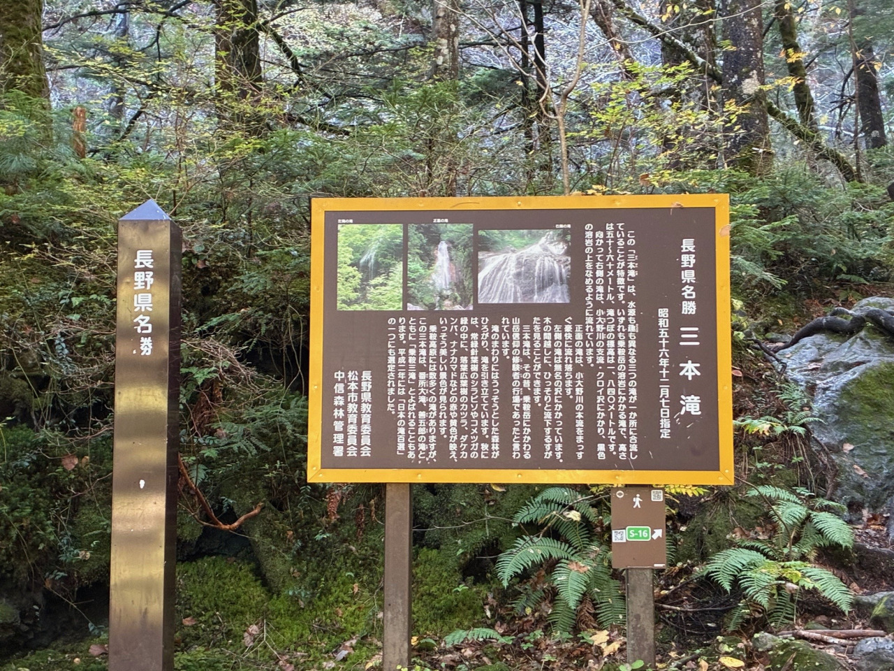 - 松本ICから約1時間20分、三本滝レストハウス駐車場から徒歩約25分