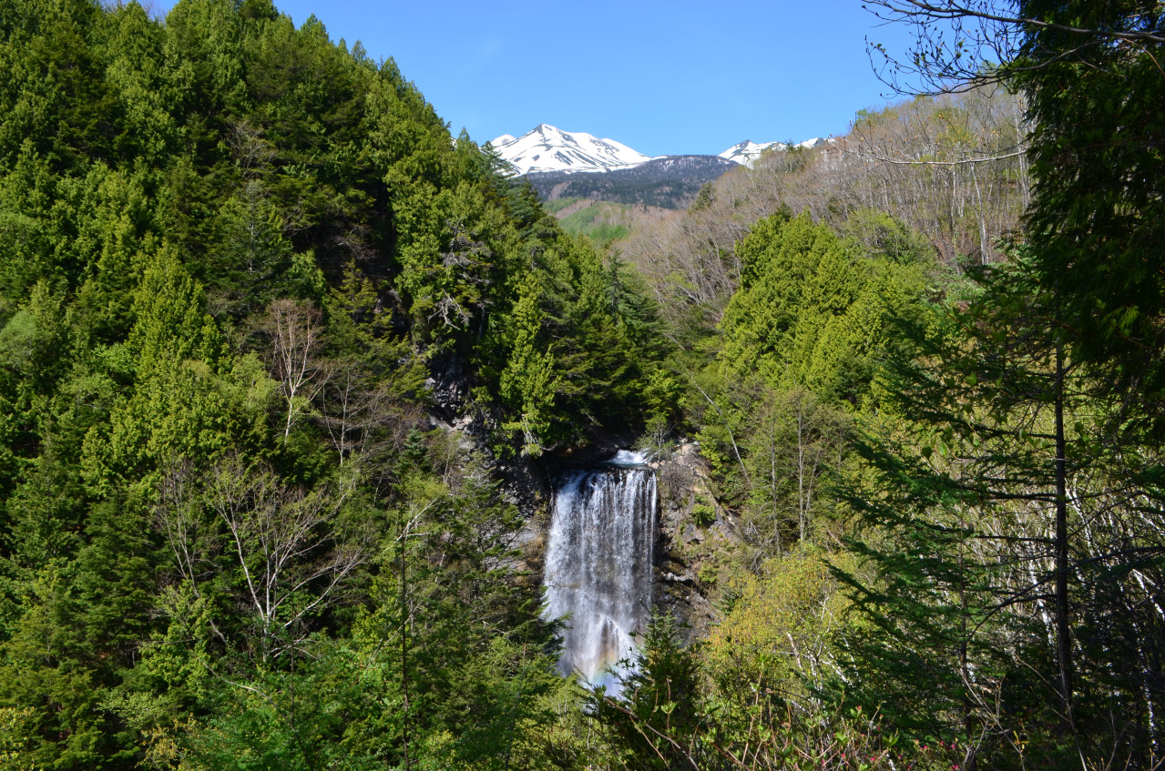 乗鞍高原の森の中に流れ落ちる落差約22mの滝。遊歩道を歩いて滝見台から間近に眺めることができ、水しぶきと迫力ある水音を体感できます。新緑や紅葉など四季折々の自然に加え、冬には氷瀑となる姿も見どころ。三本滝、番所大滝とともに「乗鞍三滝」として知られる、人気の滝です。