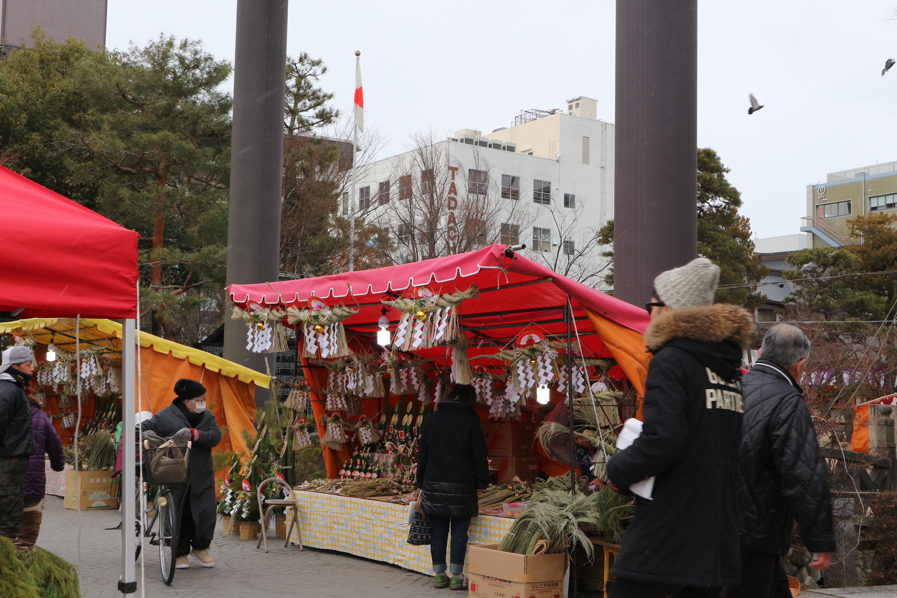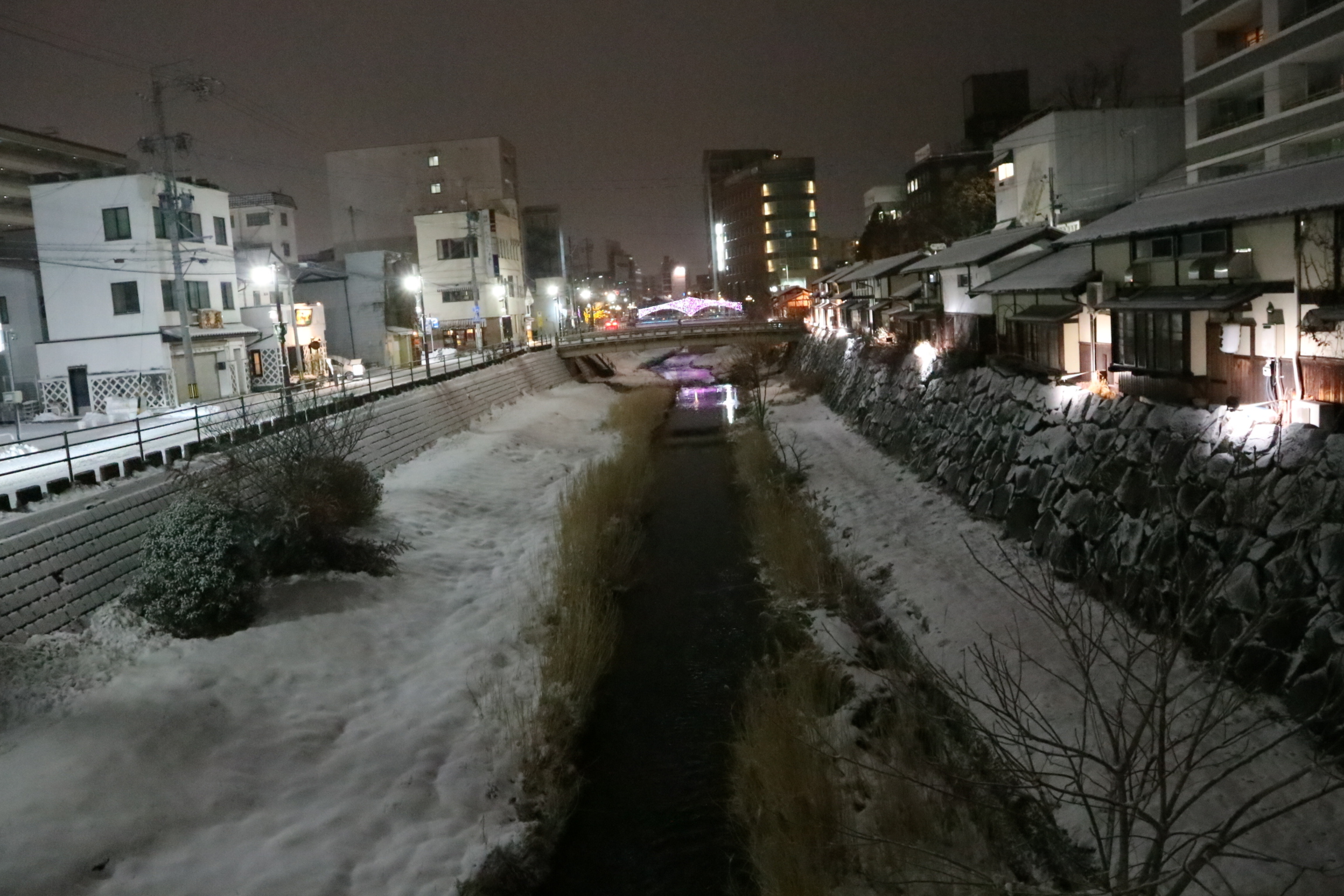 江戸時代は、総掘りと女鳥羽川に挟まれた土手でした。一本の縄を伸ばしたような真っ直ぐな道から「縄手通り」と呼ばれています。明治になり天皇ご巡幸に併せて南総掘りが埋められ「四柱神社」が建立されてから参道として賑わいました。大正時代から場所止めされ現在も365日歩行者天国です。