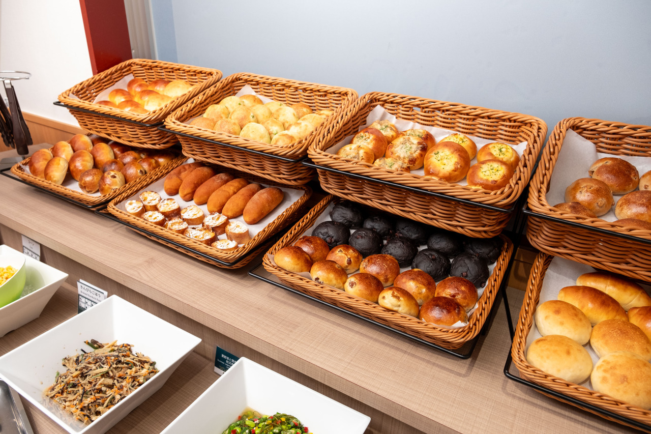 朝食は地元の老舗パン店が毎朝焼き上げるパンやカレー、サラダ、和惣菜など軽めの内容ですが無料にてご提供しており、「パンがすごくおいしかった」「無料がうれしい」など多くのお客様からご高評もいただいております。
