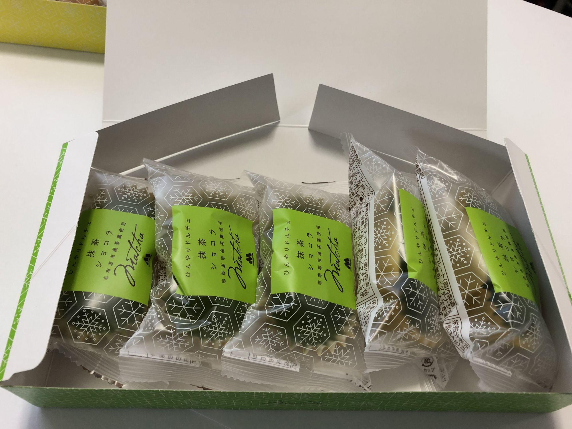 เป็นขนมหวานคล้ายกับช็อคโกแลตรสชาเขียว รสชาติเข้มข้นด้วยชาเขียว ละลายในปาก หวานมันกำลังดี ไม่หวานมากเกินไปและไม่น้อยเกินไป หากได้ชิมแล้วรับรองว่าอร่อยจนหยุดที่ชิ้นเดียวไม่ได้จริงๆ เป็นขนมที่อยากแนะนำให้ท่านที่ชื่นชอบชาเขียวลองชิมมากๆ เลยค่ะ