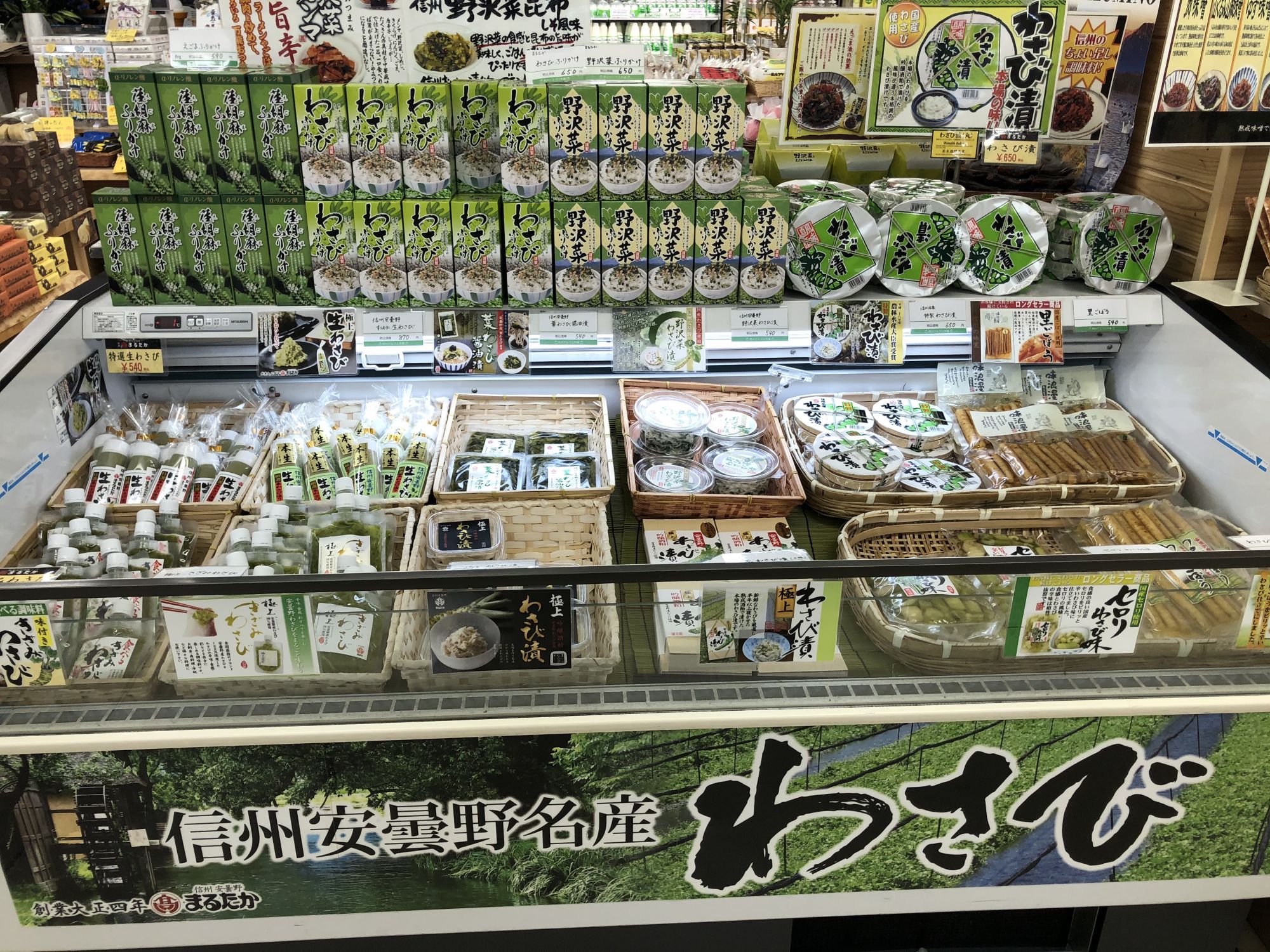 มุมจำหน่ายของฝากที่ทำจากวาซาบิ จากไร่วาซาบิในอำเภออะซูมิโน่