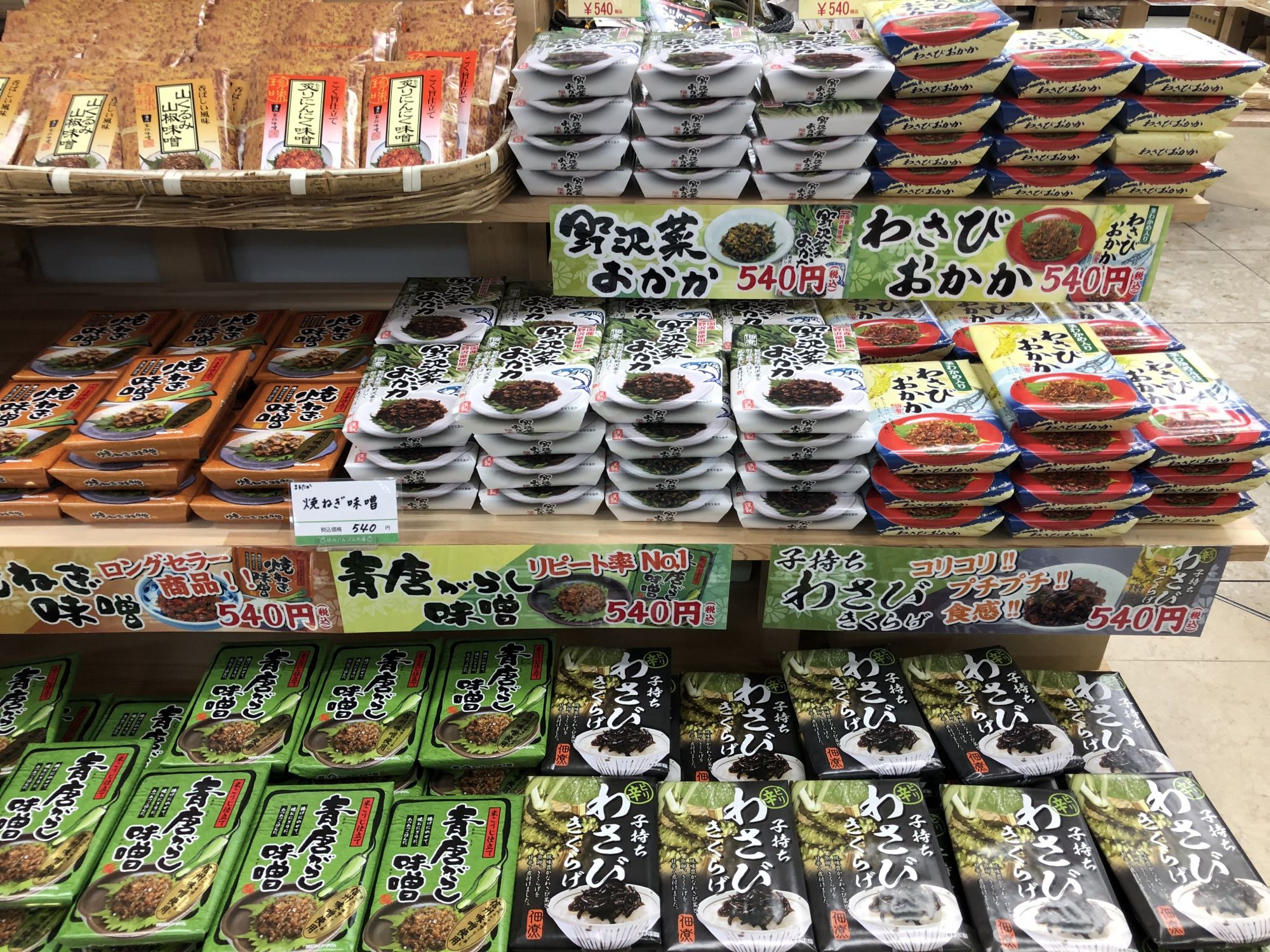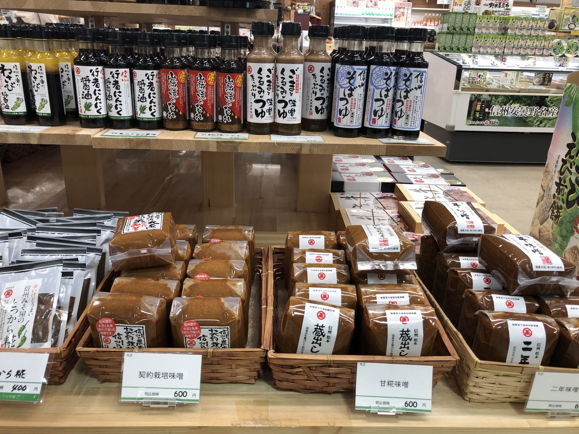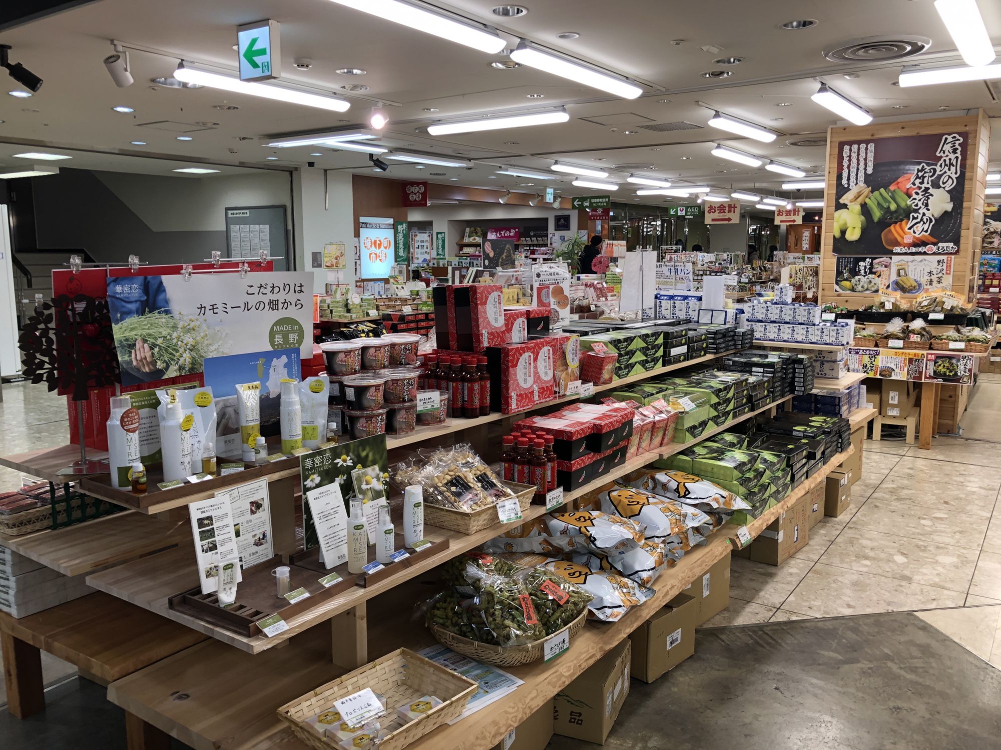 สำหรับร้านนี้ นอกจากจะมีของฝากพื้นเมืองของมัตสึโมโต้แล้ว ยังมีผัก ผลไม้ เช่น แอปเปิ้ลที่ปลูกในนากาโน่จำหน่ายในราคาไม่แพงอีกด้วย