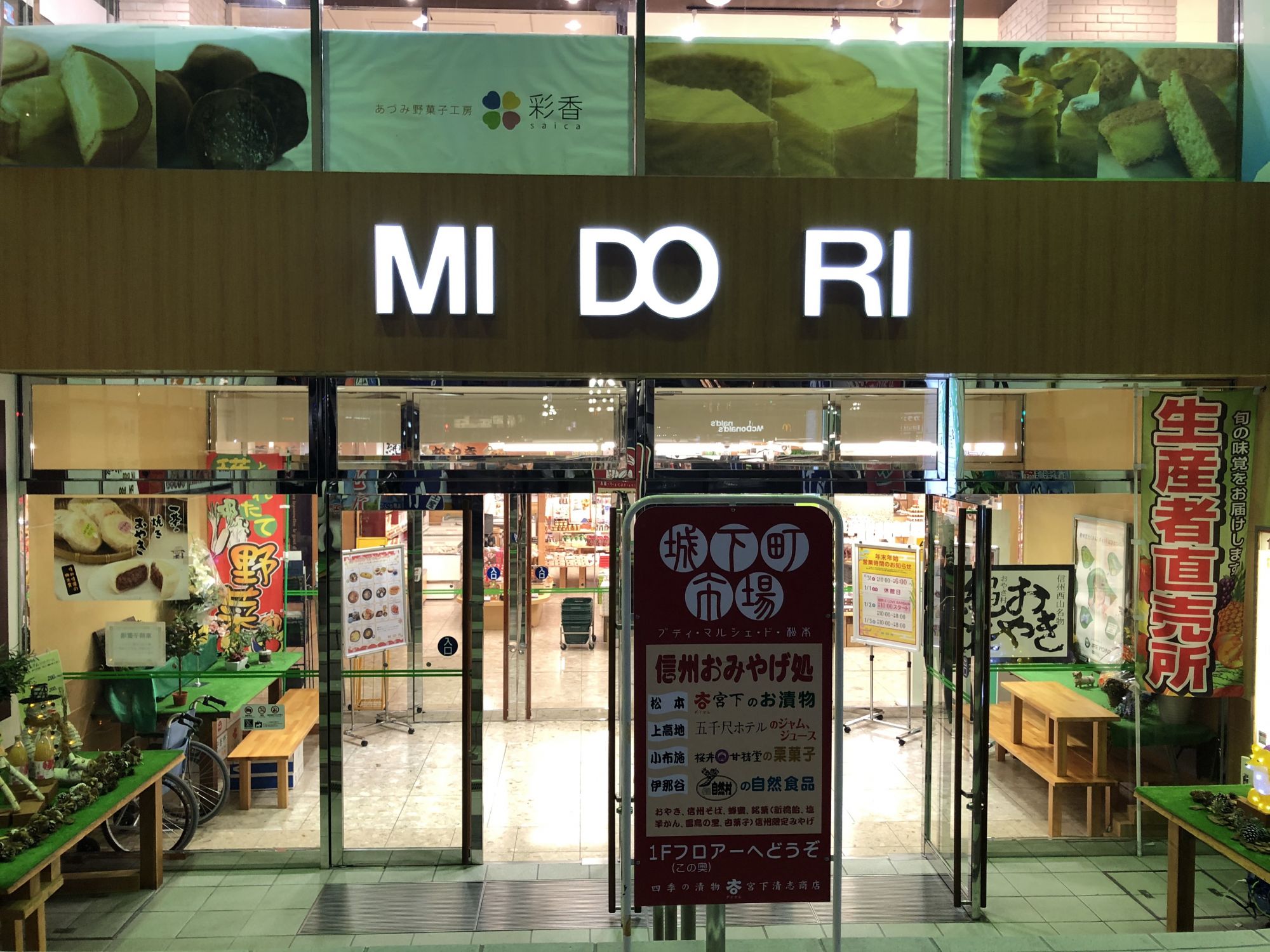 สำหรับปีใหม่นี้ หากใครมาเที่ยวมัตสึโมโต้แล้วกำลังมองหาขนม ของฝากขอแนะนำร้านขายของฝากที่อยู่ที่ชั้น 1 ห้างมิโดริ ติดกับสถานีรถไฟมัตสึโมโต้ ร้านขายของฝากนี้พื้นที่ค่อนข้างกว้างและมีของฝากต่างๆ ให้เลือกมากมาย
