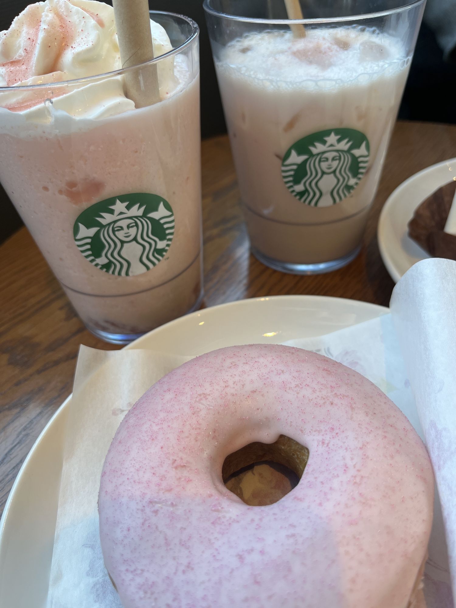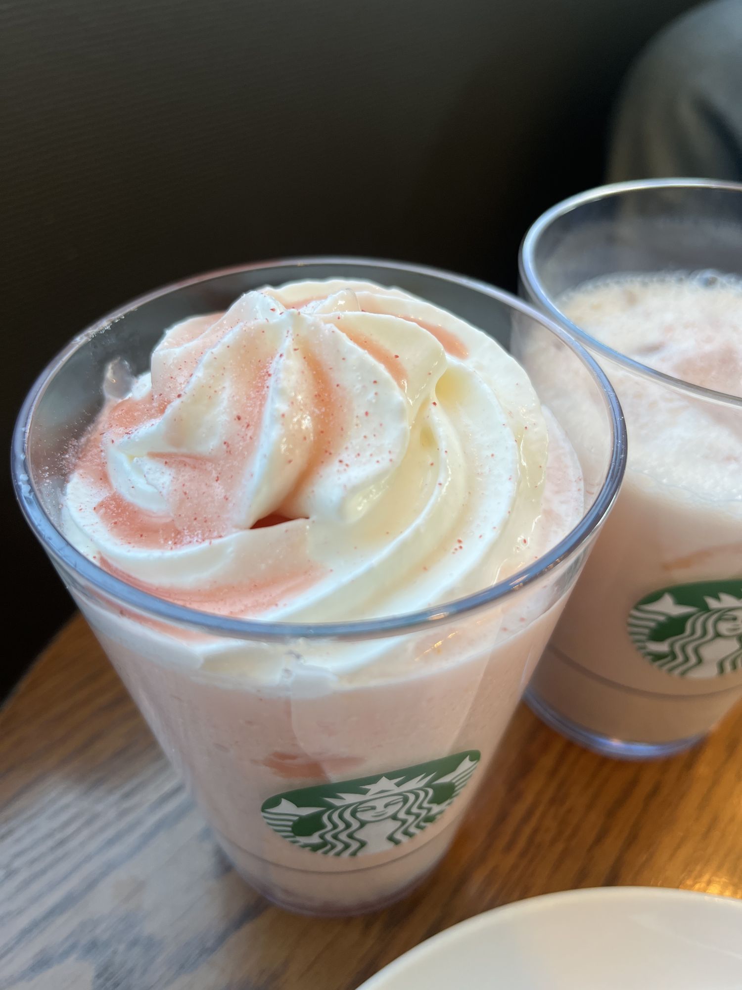 ด้วยการผสมผสานลูกพีชสีขาวอันสง่างามกับวาราบิโมจิรสดอกซากุระ แฟรปปูชิโน่นี้จะทำให้คุณสัมผัสถึงฤดูใบไม้ผลิด้วยรูปลักษณ์และกลิ่นหอมของมัน  รสชาติอ่อนๆ ของลูกพีชขาวผสมผสานกับรสครีมของไวท์ช็อกโกแลต ก่อให้เกิดกลิ่นดอกซากุระและเนื้อสัมผัสที่กรุบกรอบซึ่งเพิ่มรสชาติที่ยอดเยี่ยมให้กับวาราบิโมจิ