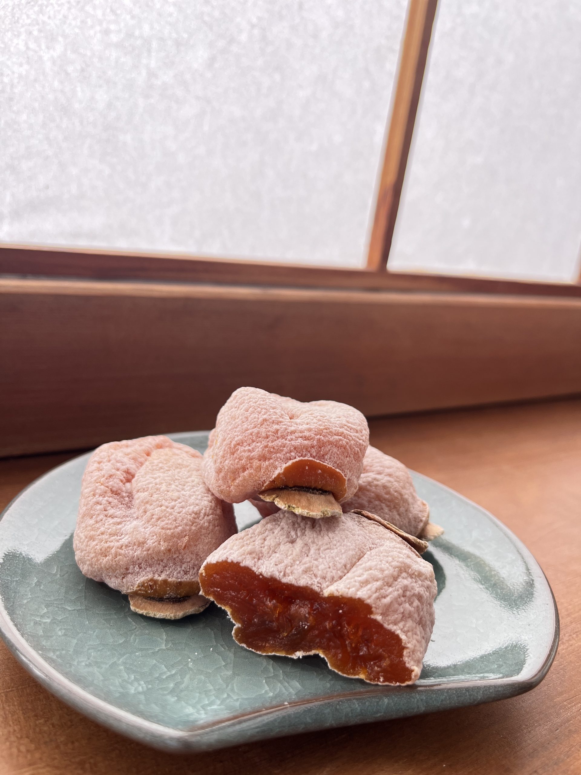 ลูกพลับ “อิชิดะ” ของจังหวัดนากาโนะมีชื่อเสียงอย่างมากในฐานะตัวแทนของพลับที่ปลูกในฤดูหนาว ตากแห้งตามธรรมชาติในความหนาวเย็นของฤดูหนาวในจังหวัดนากาโนะ ลูกพลับเหล่านี้มีขนาดเล็ก แต่มีลักษณะเด่นคือความหวานที่กลมกล่อม เนื้อเหนียว และมีผงสีขาวอยู่ด้านบน (น้ำตาลที่ตกผลึกจากกระบวนการตากแห้งตามธรรมชาติ) ลูกพลับแห้งมีคุณค่าทางโภชนาการสูงให้ประโยชน์ต่อความงามและสุขภาพ เช่น ช่วยบำรุงผิวพรรณ ช่วยลดน้ำหนัก และเสริมสร้างระบบภูมิคุ้มกัน ลูกพลับแห้งผลิตกันทั่วประเทศ แต่ลูกพลับอิชิดะจากจังหวัดนากาโนะคิดเป็น 48.8% ของปริมาณการส่งออกลูกพลับแห้งทั้งหมดทั่วประเทศ กล่าวกันว่าลูกพลับแห้งมีประวัติยาวนานกว่า 500 ปี และเทคนิคที่ใช้ได้ถูกส่งต่อกันมาหลายรุ่น สามารถหาซื้อได้ที่ร้านค้าของสมาคมสหกรณ์การเกษตรแห่งญี่ปุ่นและร้านขายของที่ระลึก ทำให้เป็นของฝากที่แนะนำจากทริปของคุณค่ะ