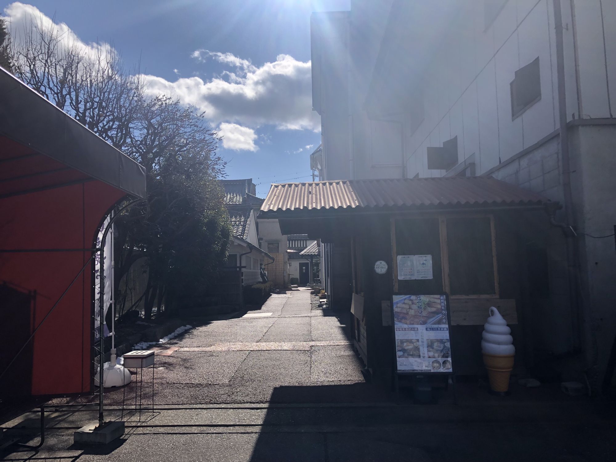 บรรยากาศในร้านขายของฝาก ด้านหลังเป็นครัวและเป็นห้องรับประทานอาหารกลางวัน พอเข้าไปในร้านของฝากเค้าจะถามว่าจะรับซุปมิโซะมั๊ย เค้ามีให้ชิมฟรี เสริ์ฟพร้อมกับแตงกวาดอง หัวไชเท้าดอง และขนม 1 ชิ้น อาหารกลางวันมีให้เลือกหลายเมนู หรือจะสั่งข้าวปั้นเคลือบมิโซะแล้วเอาไปย่างจนหอมกับซุปมิโซะก็ได้ ราคา 715 เยน