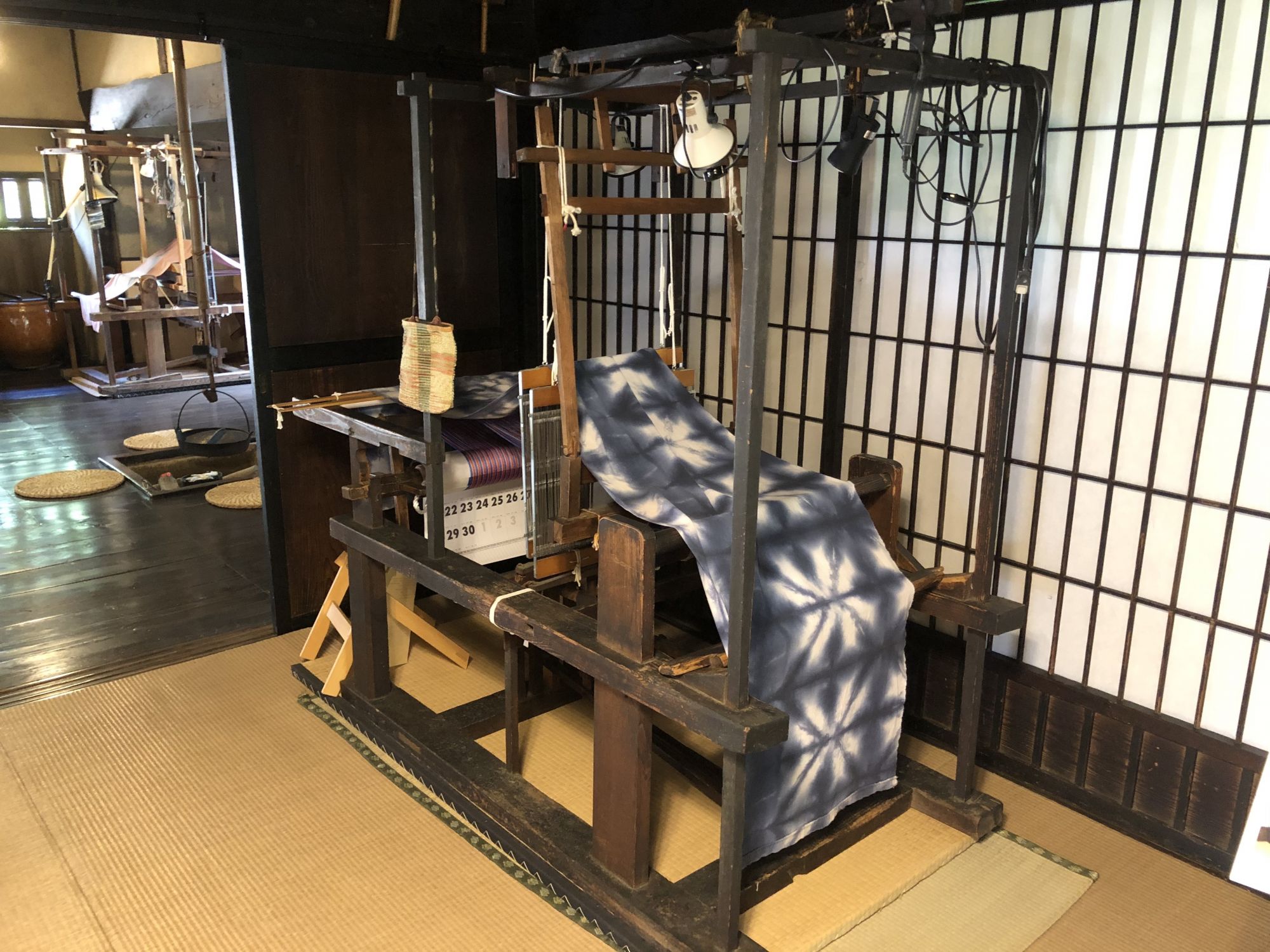 ภายในบ้านจัดแสดงกี่ทอผ้า ข้าวของเครื่องใช้ ห้องต่างๆ ภายในบ้าน รวมทั้งห้องน้ำในสมัยก่อน
