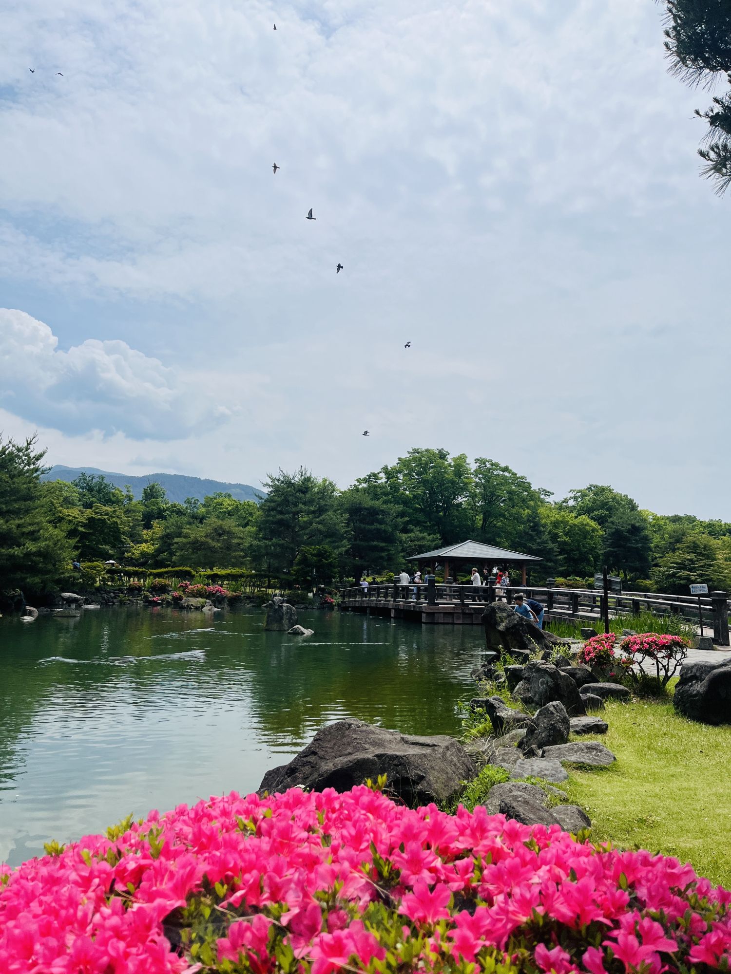 เมื่อเดินเข้าไปในทางเข้าสวนสาธารณะ คุณจะเห็นต้นซีดาร์หิมาลัยที่งดงามเรียงรายกัน ซึ่งปลูกไว้เมื่อกว่า 100 ปีที่แล้ว มีม้านั่งใต้ต้นไม้ที่คุณสามารถพักผ่อนใต้ร่มเงาเย็นสบายได้ เมื่อเดินผ่านแถวต้นซีดาร์หิมาลัย คุณจะเห็นสวนญี่ปุ่น มีบ่อน้ำอยู่ตรงกลาง ศาลาที่สามารถข้ามสะพานไปถึงได้ และบริเวณที่มีลำธาร ทำให้ที่นี่เป็นสถานที่พักผ่อนสำหรับชาวบ้าน สวนสาธารณะทั้งหมดได้รับการดูแลอย่างดี คุณสามารถเดินเล่นอย่างเพลิดเพลินได้ในขณะที่สัมผัสกับฤดูกาลทั้งสี่ ได้แก่ ซากุระในฤดูใบไม้ผลิ ต้นไม้เขียวขจีในช่วงต้นฤดูร้อน ใบไม้ร่วงในฤดูใบไม้ร่วง และหิมะในฤดูหนาว