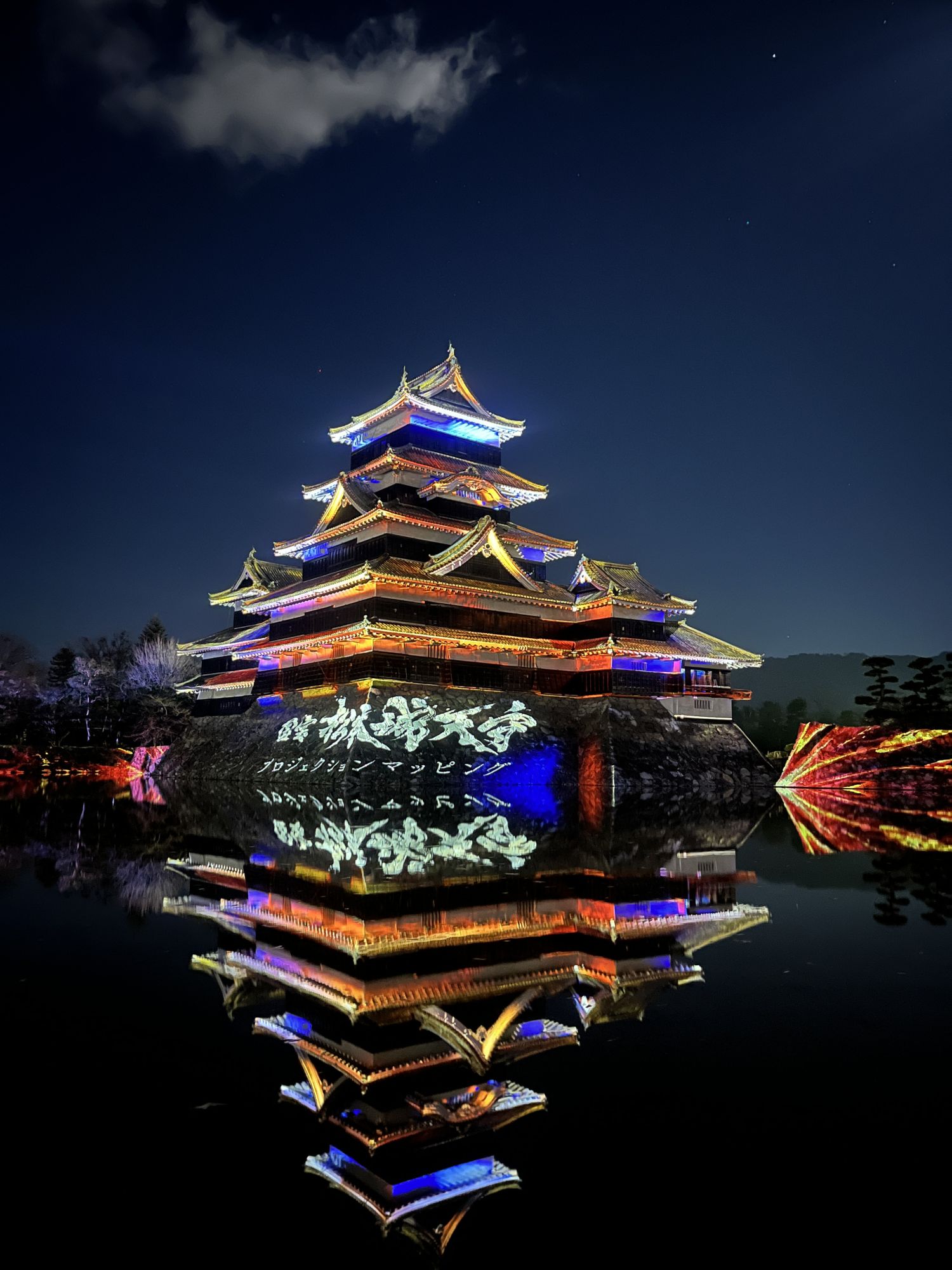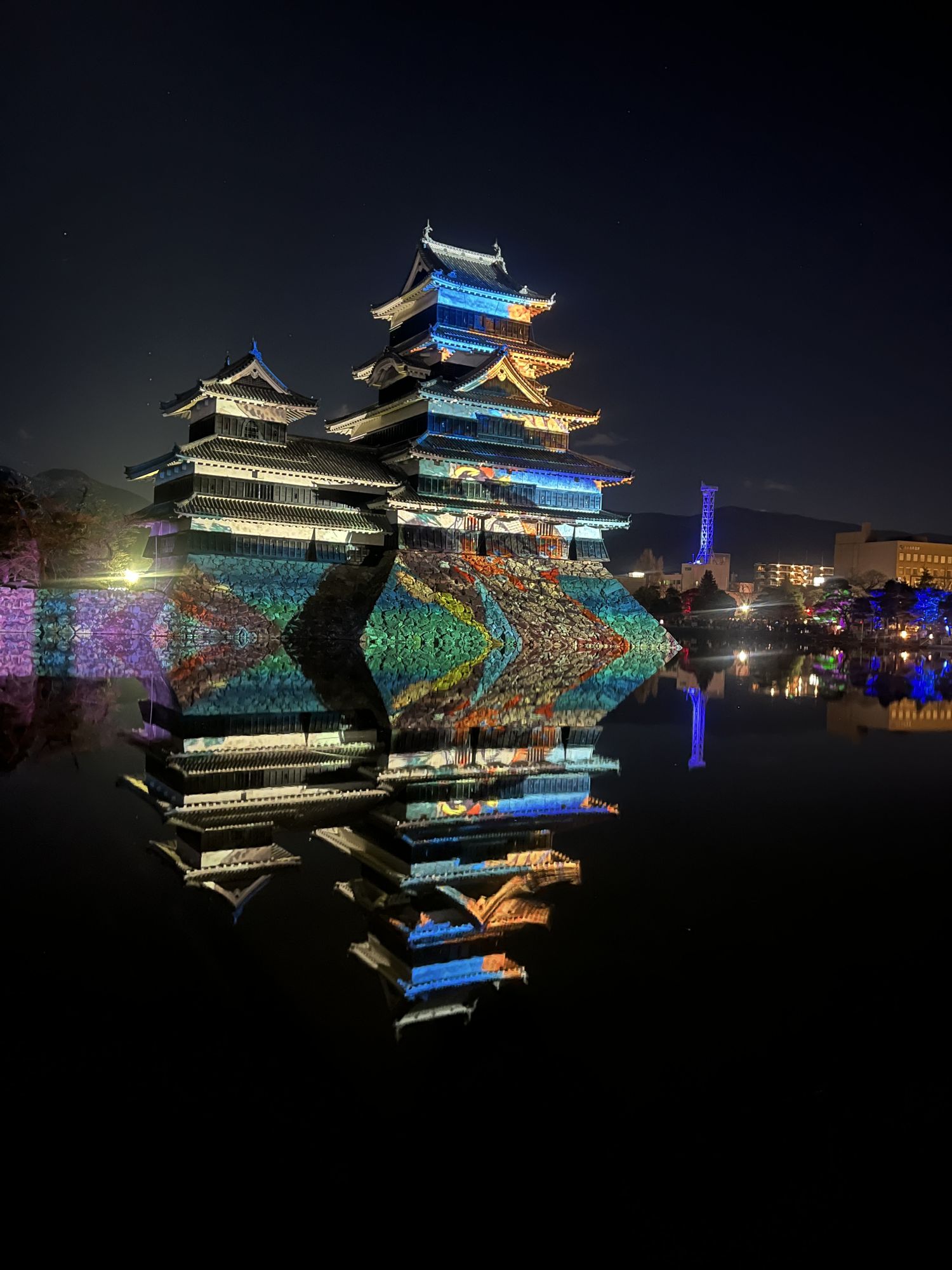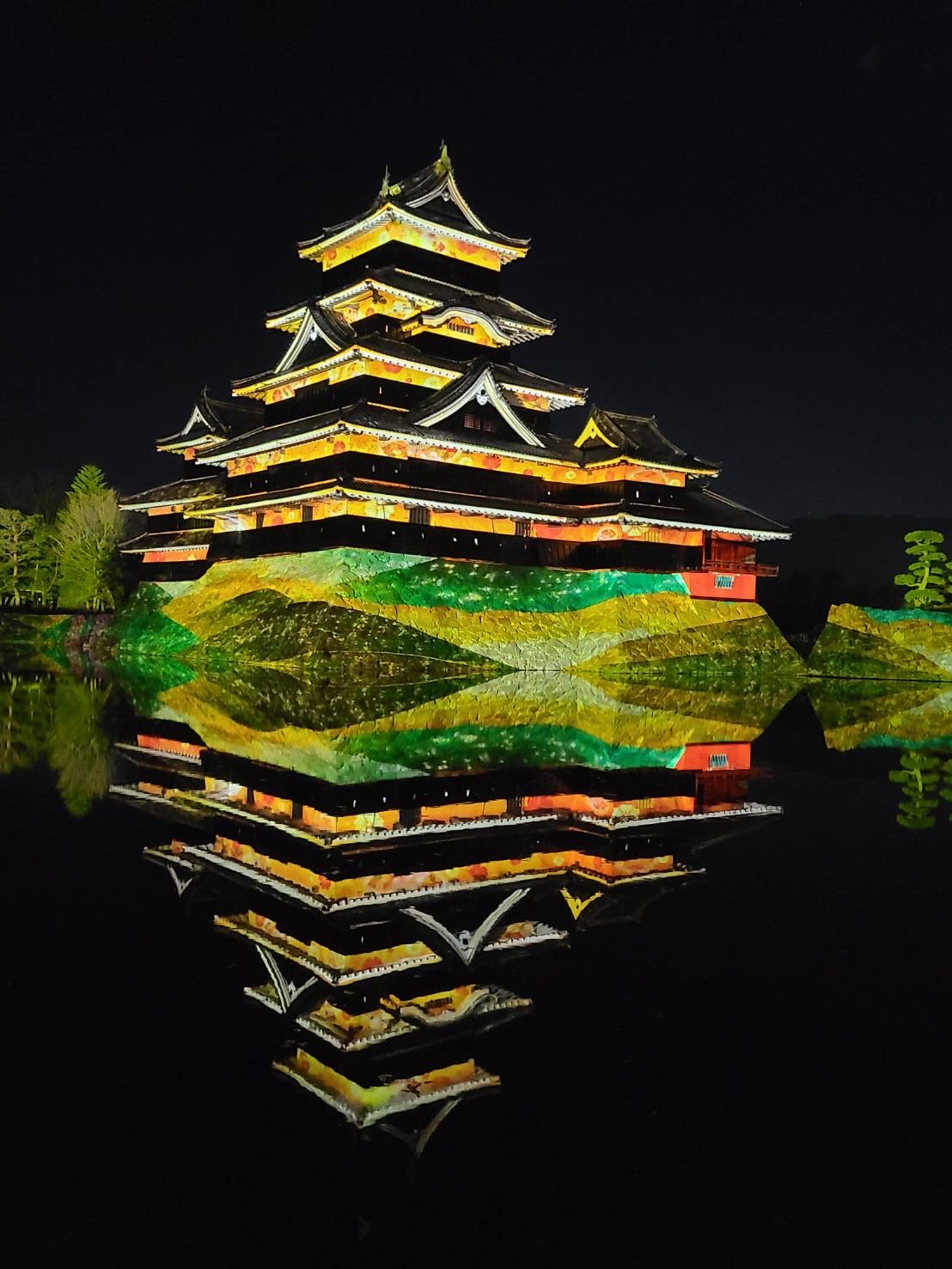 การฉายเลเซอร์แมปปิ้งเป็นสมบัติของชาติ  มัตสึโมโต้ เทมาเรีย มิยามะเป็นแอนิเมชั่นดิจิทัลที่หอคอยปราสาทและกำแพงหินของปราสาทมัตสึโมโต้ถูกเคลื่อนไหวด้วยภาพพิมพ์อุกิโยะที่เกี่ยวข้องกับชินชูโดยคัตสึชิกะ โฮคุไซและอุตะกาวะ ฮิโรชิเงะ รวมถึงภาพวาดบนจอพับที่แสดงภาพคาซูมาสะ อิชิคาวะ เจ้าแห่งปราสาทมัตสึโมโต้ ผู้สร้างหอคอยปราสาทอันงดงาม ศิลปะดิจิทัล ด้วยลวดลายงานฝีมือแบบดั้งเดิมอันเป็นเอกลักษณ์เฉพาะของเมืองมัตสึโมโต้