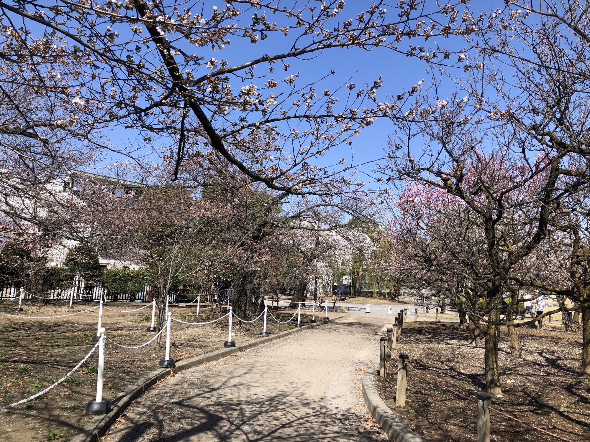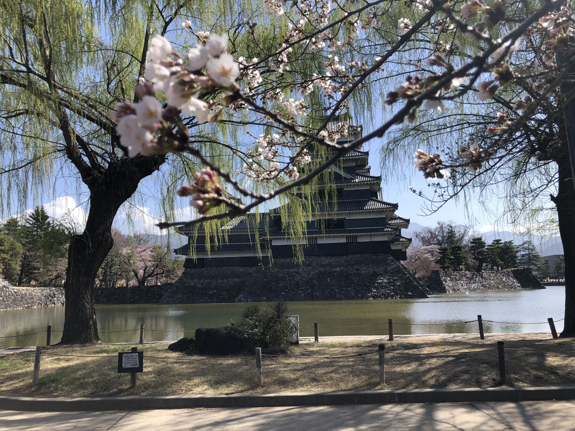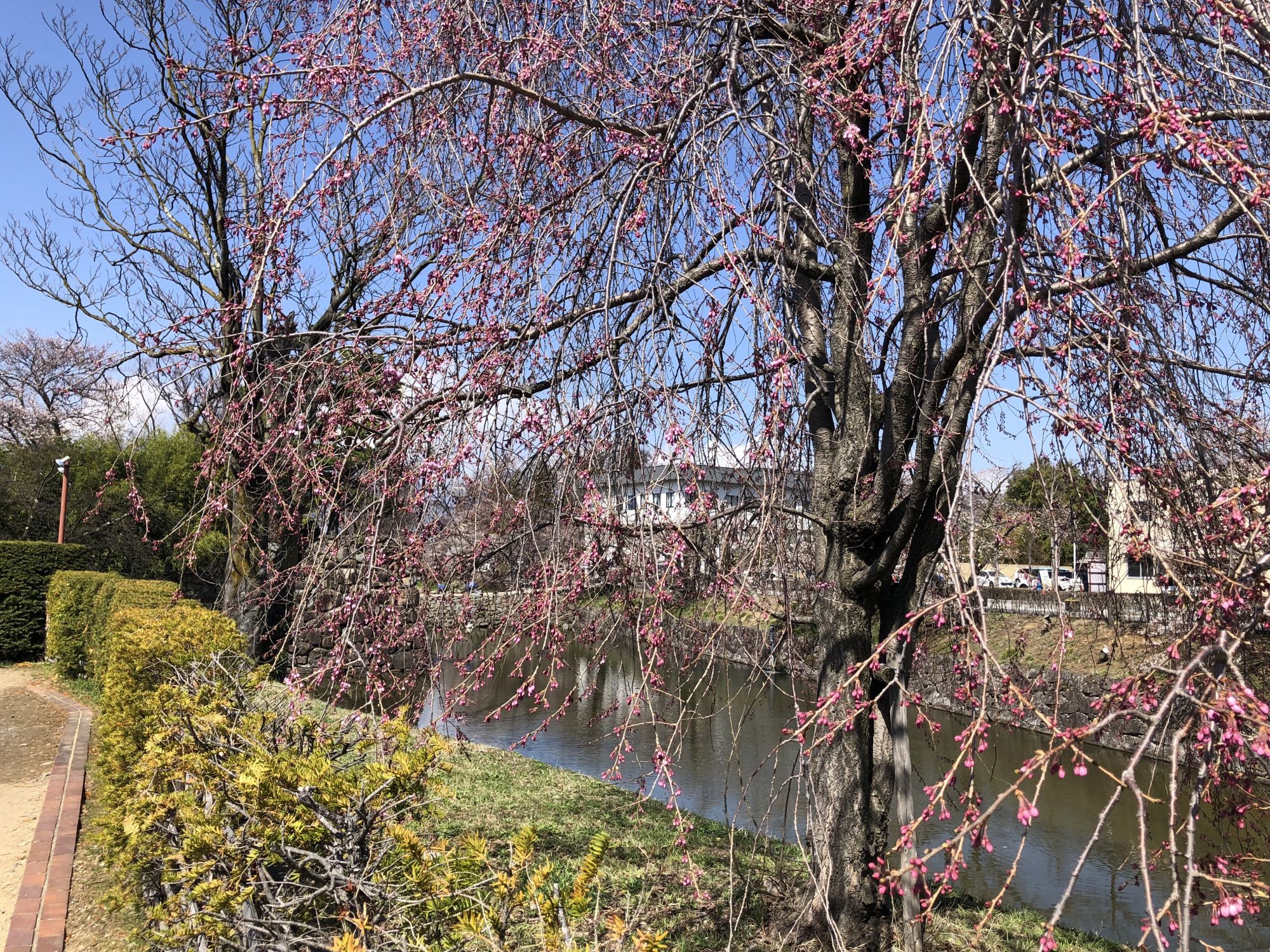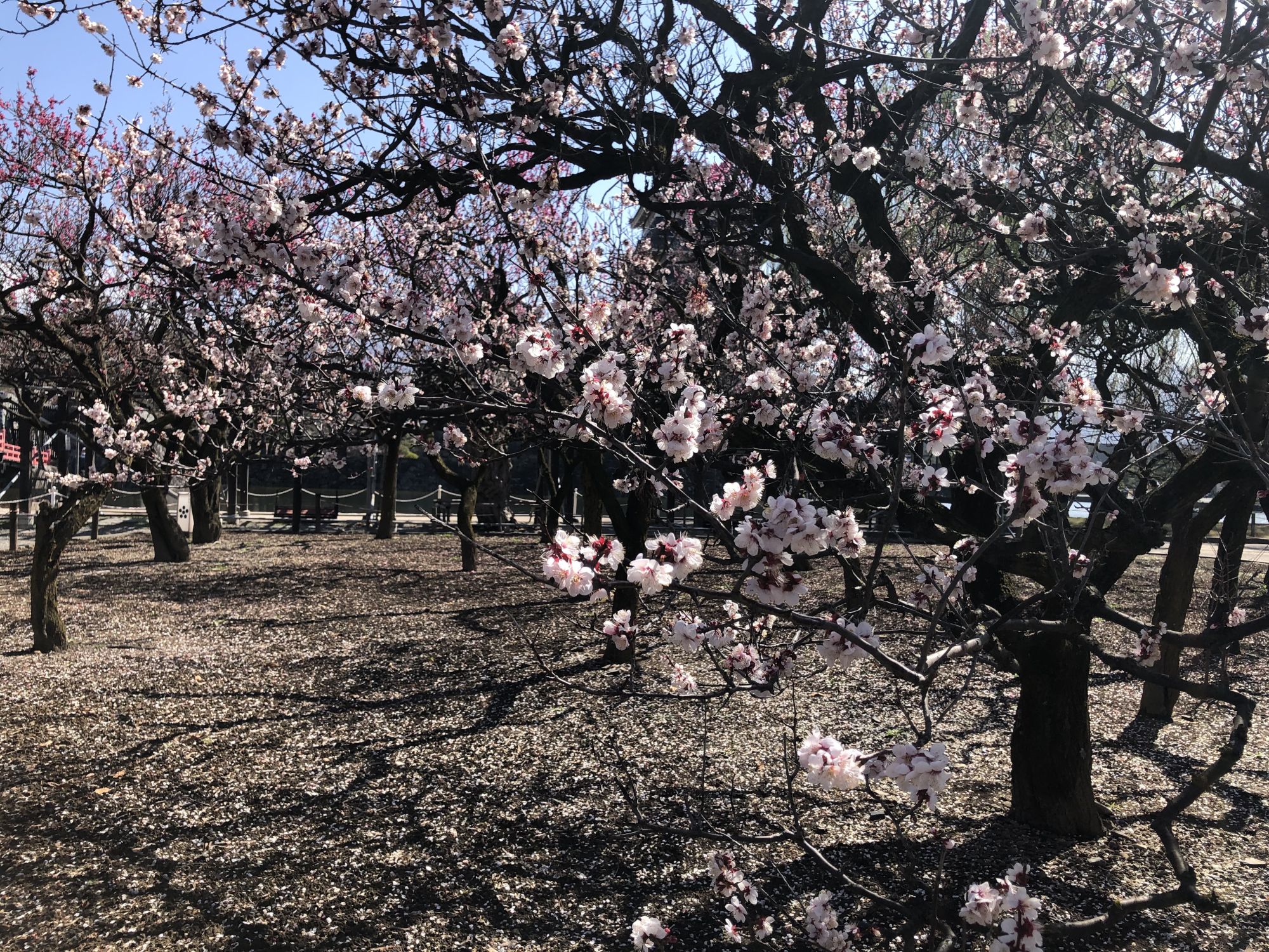 ภาพบรรยากาศบริเวณสวนสาธารณะปราสาทมัตสึโมโต้ ณ วันที่ 28 พึ่งจะเริ่มบาน ยังไม่ได้บานสะพรั่ง
