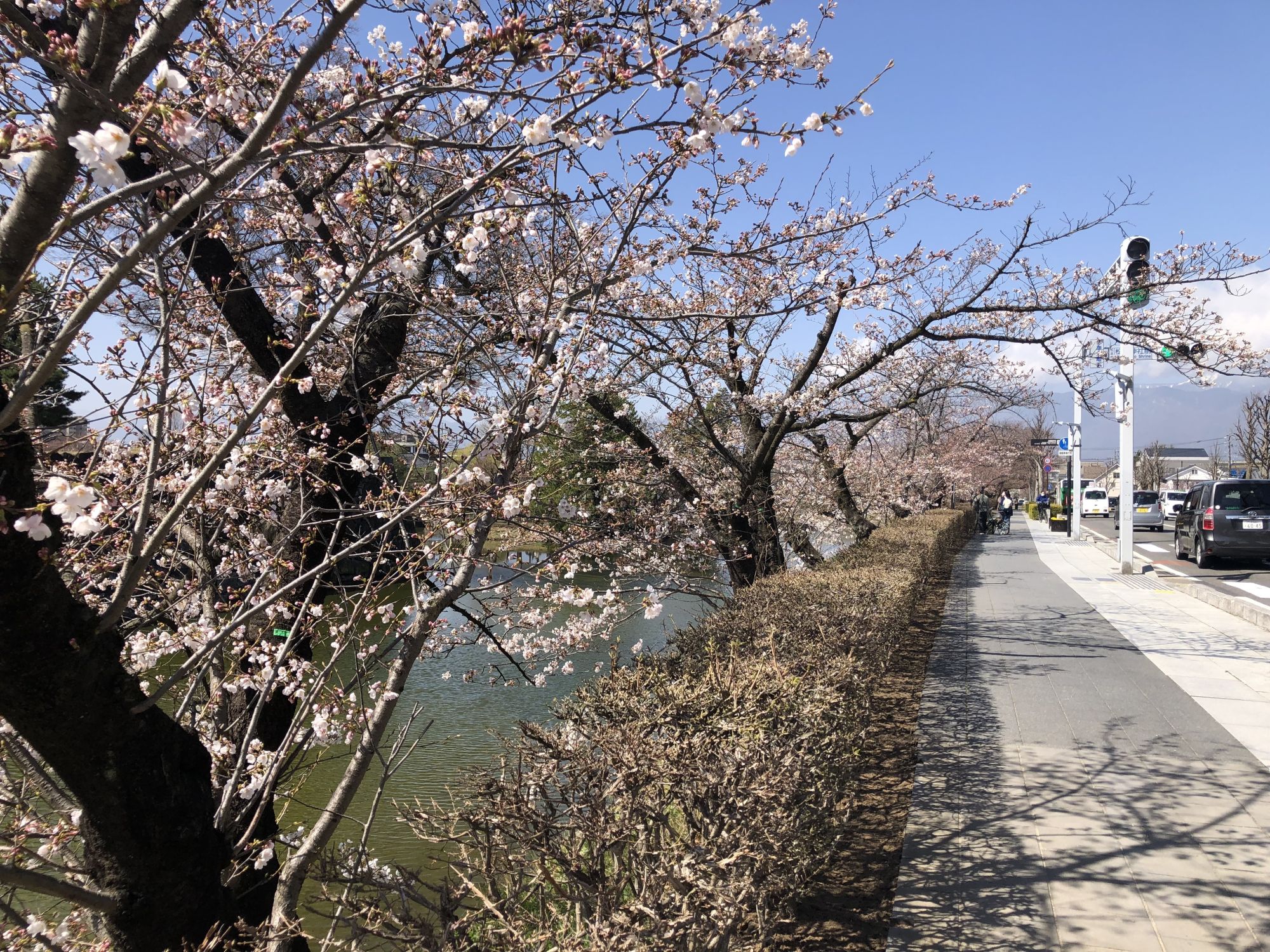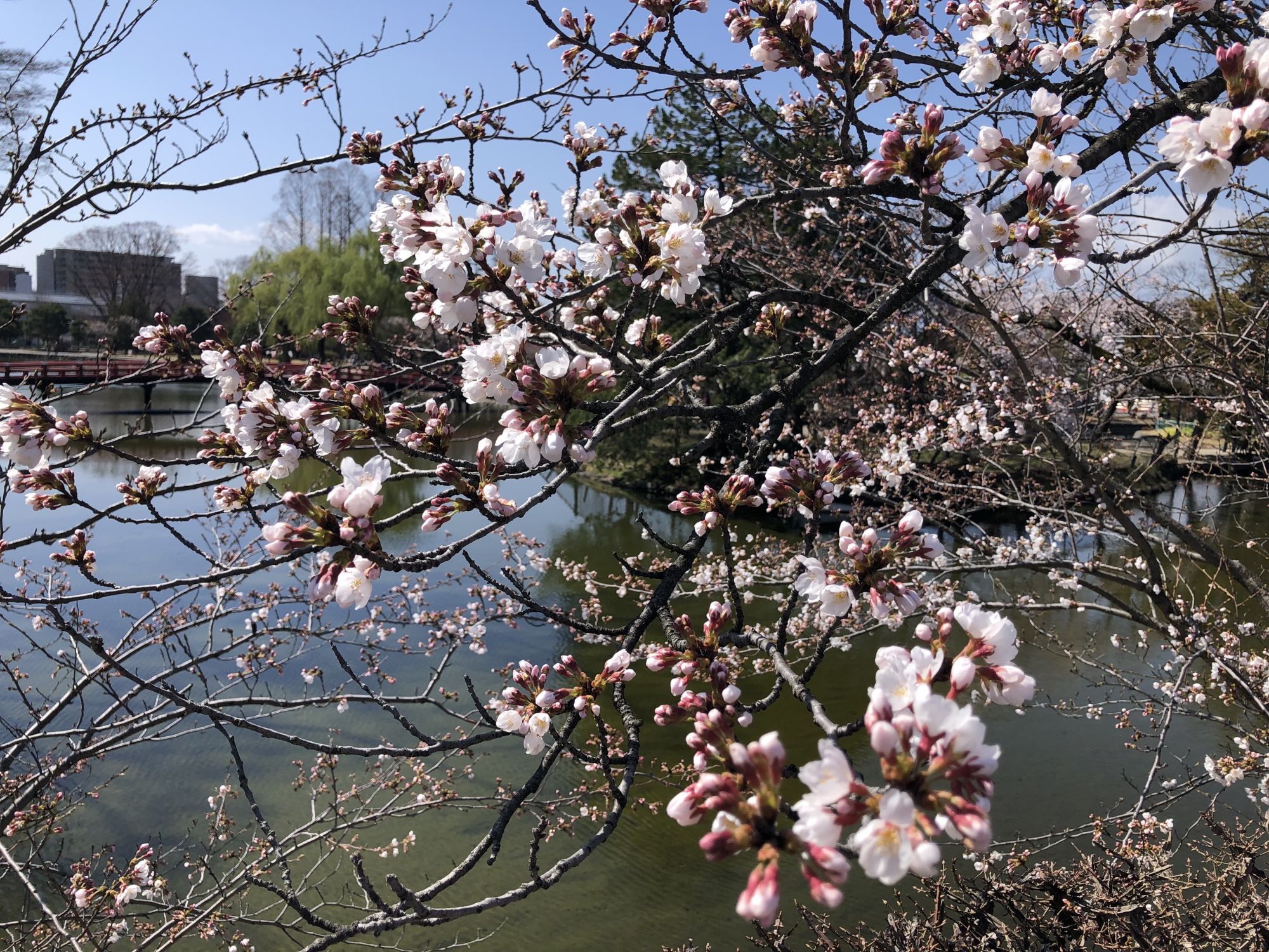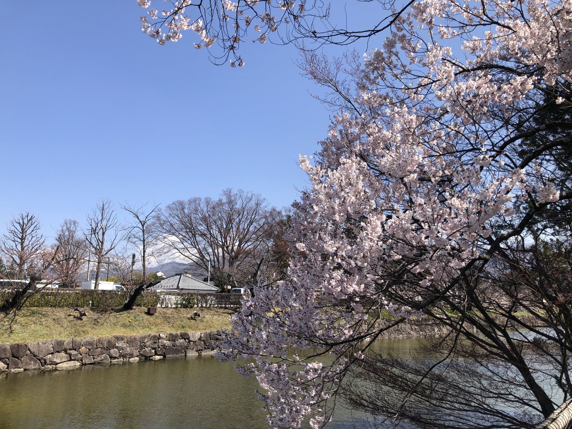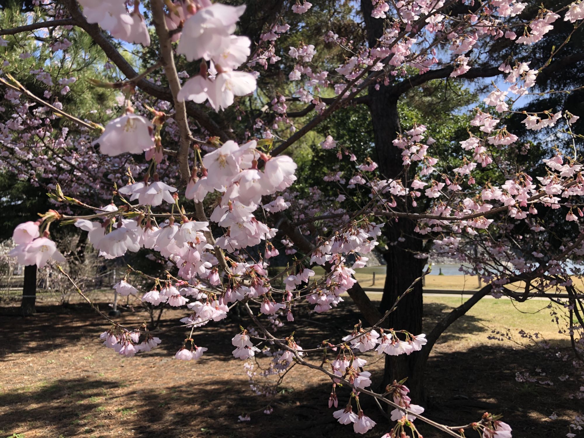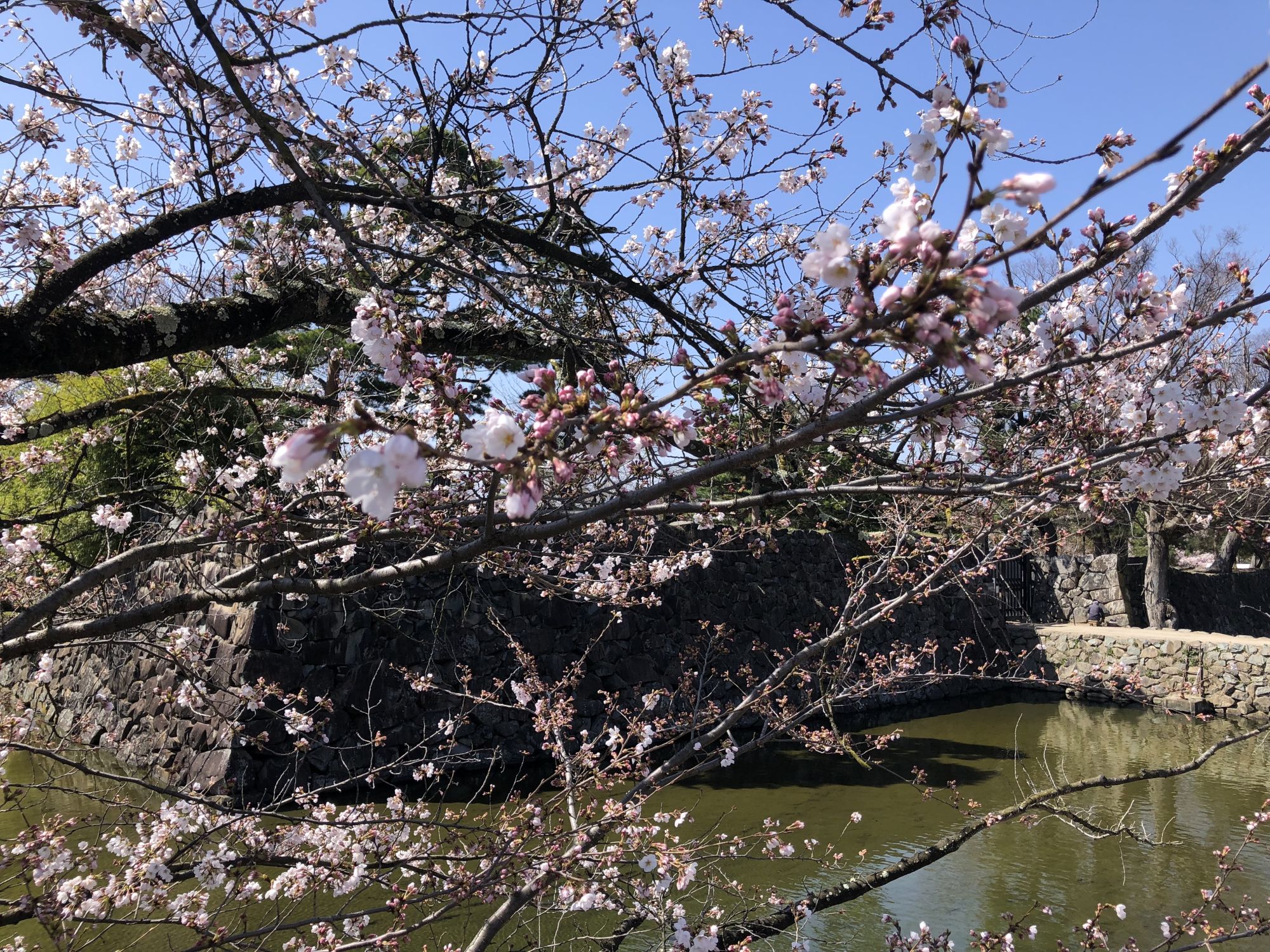 ภาพบรรยากาศบริเวณสวนสาธารณะปราสาทมัตสึโมโต้ ณ วันที่ 28 พึ่งจะเริ่มบาน ยังไม่ได้บานสะพรั่ง