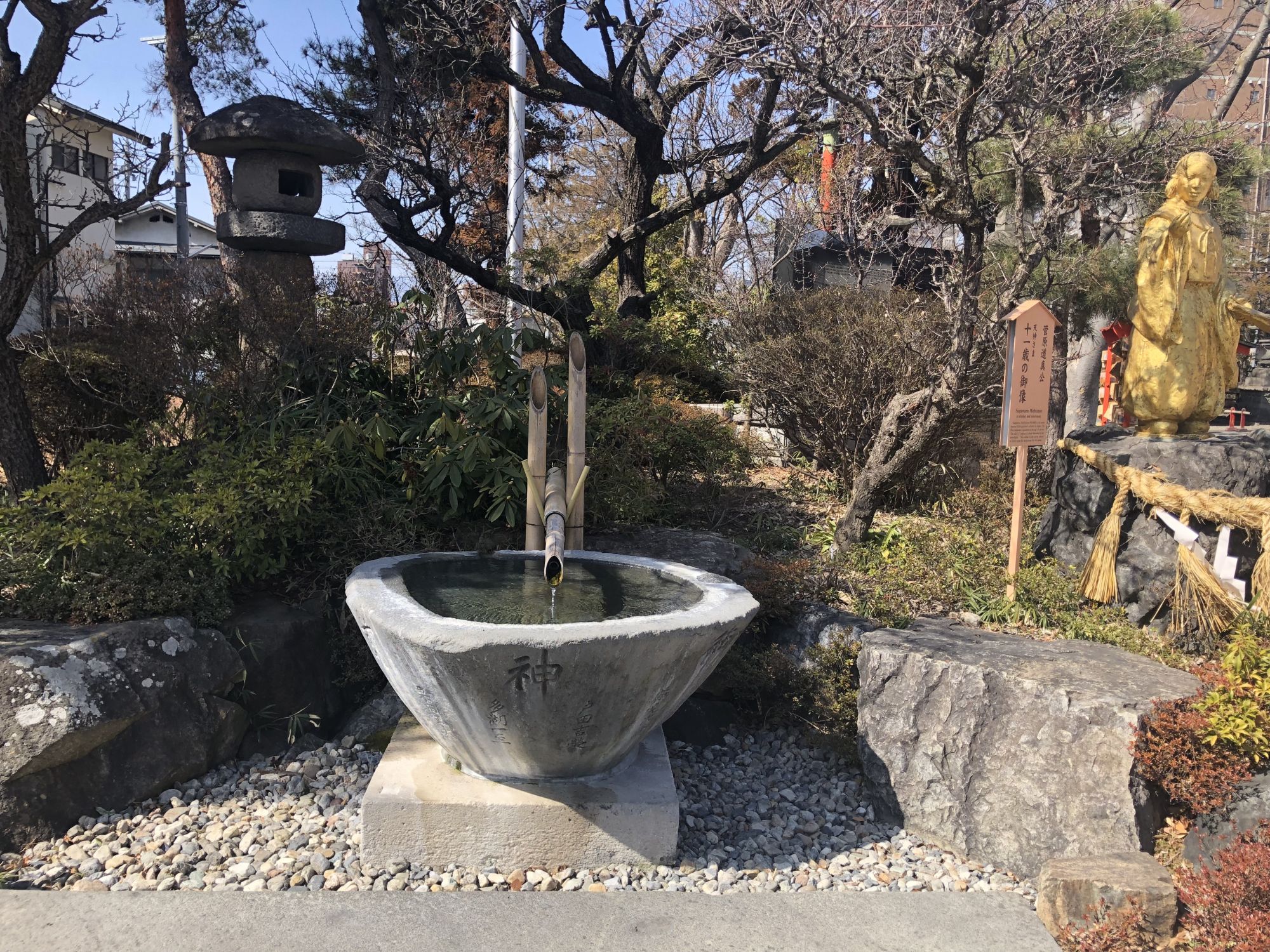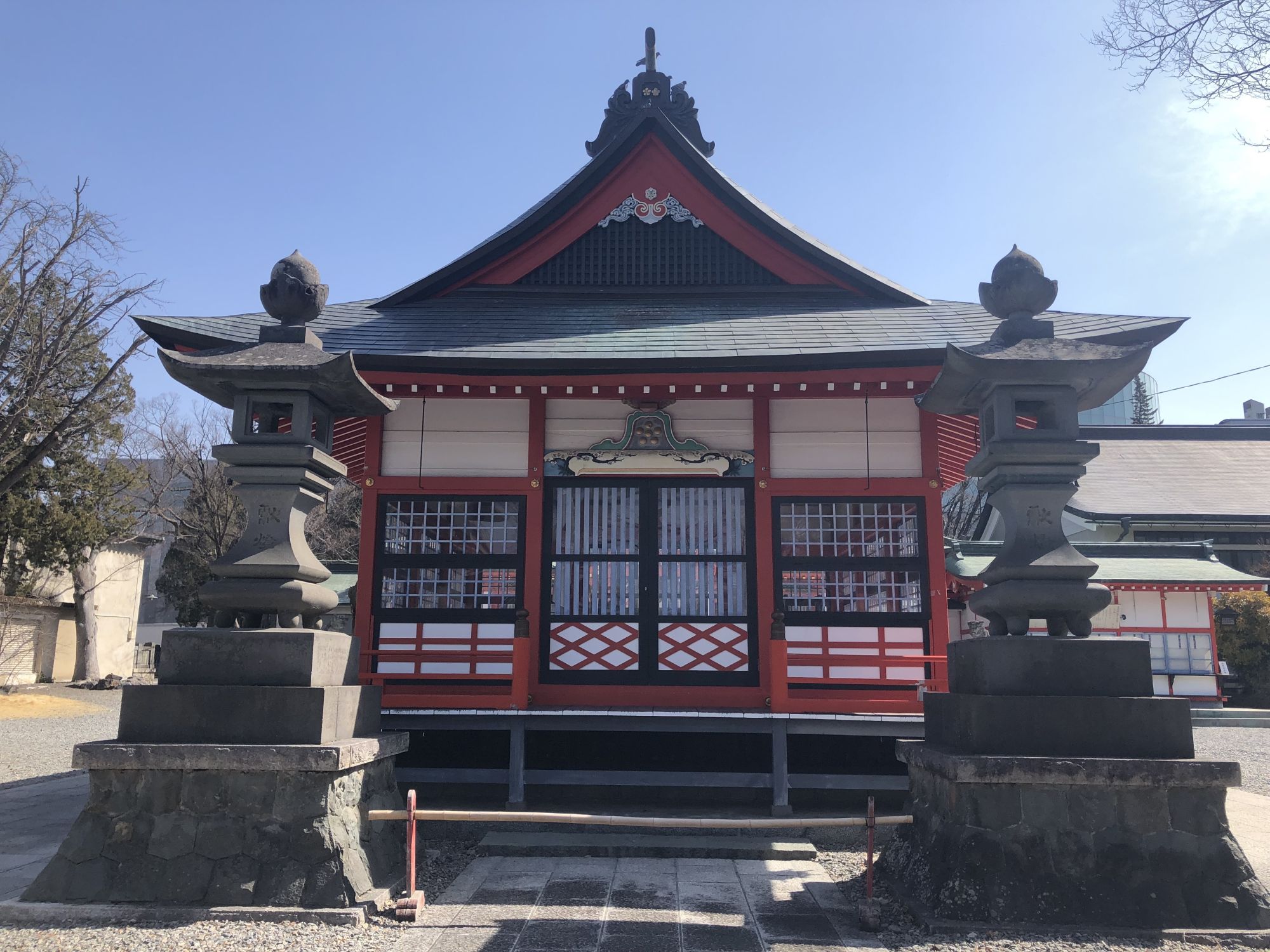 จากซุ้มประตูศาลเจ้า เมื่อเดินตรงมาเรื่อยๆ จะสามารถเดินทะลุไปห้าง INOUE ซึ่งอยู่ไม่ไกลจากสถานีมัตสึโมโต้ได้ ระหว่างทางจะมีร้านขายปาเอญ่า(ข้าวผัดสเปน) ร้านขายผลไม้ และมีร้านคาเฟ่เล็กๆ ขายเครื่องดื่มและขนมด้วย