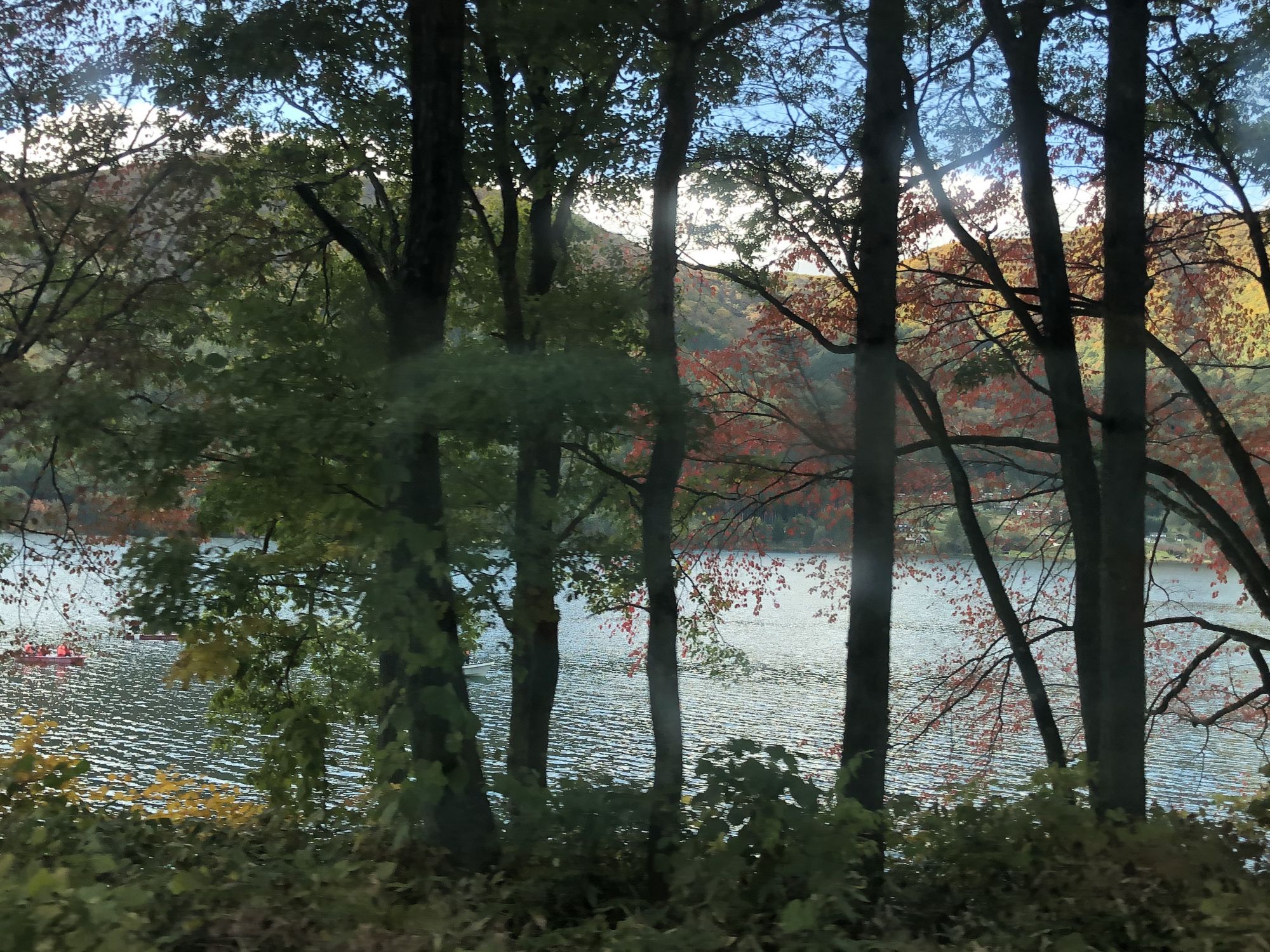 เมื่อรับพลังบวกและขอพรแล้ว กลับไปขึ้นรถไฟคันเดิมไปยังฮาคุบะ ระหว่างทางจะผ่านทะเลสาบ 3 แห่ง รถไฟจะชลอและหยุดให้นักท่องเที่ยวได้ถ่ายรูปวิวของทะเลสาบพร้อมทั้งอธิบายเกี่ยวกับทะเลสาบเป็นภาษาญี่ปุ่น