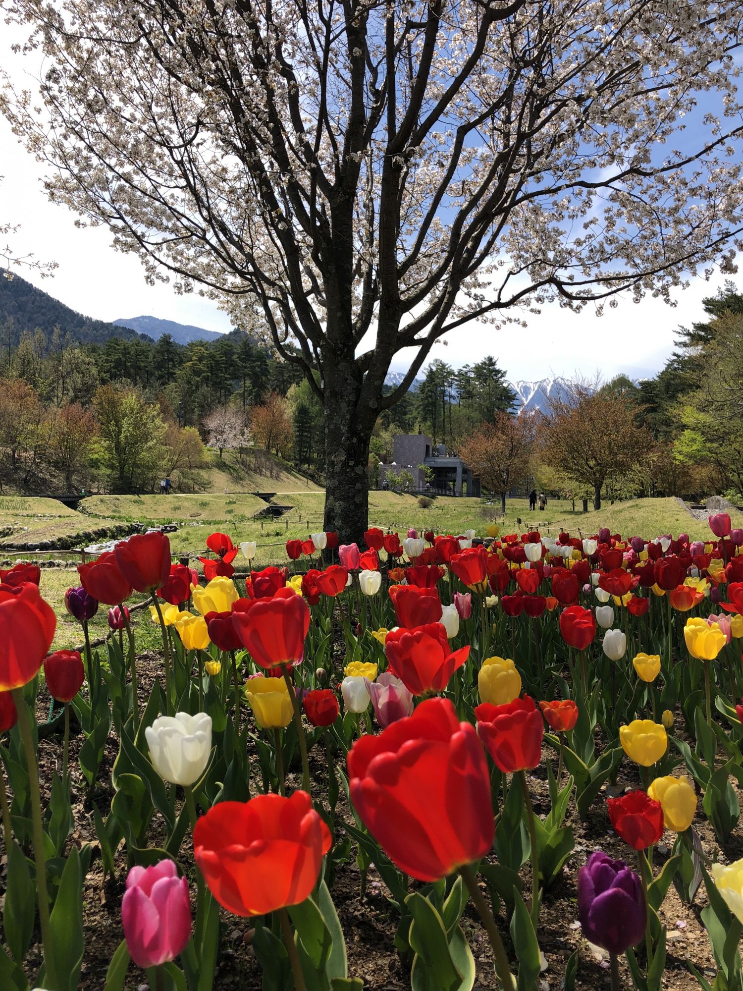ช่วงกลางเดือนเมษายนถึงต้นเดือนพฤษภาคมเป็นช่วงที่ดอกไม้นานาพันธุ์ออกดอกบานสะพรั่งสวยงาม ที่สวน Alps Azumino หรือชื่อเต็มว่าสวน Alps Azumino National Goverment Park ซึ่งอยู่ที่อำเภออะซูมิโน่ (ติดกับมัตสึโมโต้) เค้ามีการจัดงาน Spring Festa 2021 ขึ้น งานนี้มีไฮไลต์อยู่ที่ดอกทิวลิปซึ่งมีให้ชมมากมายถึง 300,000 ต้น จำนวน 93 สายพันธุ์ นอกจากนี้ยังมีทุ่งดอกนาโนะฮานะสีเหลืองอร่ามให้ถ่ายรูปกันอีกด้วย สำหรับสถานที่ชมดอกทิวลิปและดอกนาโนะฮานะเค้าจะแยกโซนกัน เนื่องจากสวน Alps Azumino มีขนาดใหญ่ติดเชิงเขาแอลป์ตอนเหนือ ที่จอดรถสำหรับชมดอกไม้ก็จะแยกกันคนละที่ นอกจากนี้ยังกินพื้นที่ทั้งอำเภอ Azumino และ Omachi ด้วย สำหรับดอกทิวลิปจะต้องไปที่สวน Alps Azumino ที่อยู่ตรง Horigane/Hotaka
