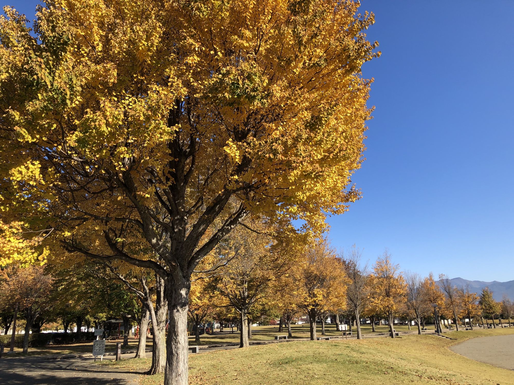 ช่วงปลายเดือนตุลาคมจนถึงต้นเดือนพฤศจิกายนเป็นช่วงที่ใบไม้กำลังเปลี่ยนสีสวยงามไม้แพ้กัน แต่ความสวยงามของใบไม้เปลี่ยนสีนั้นจะไม่เหมือนกันในแต่ละปี ขึ้นอยู่กับสภาพภูมิอากาศของปีนั้นๆ ด้วย ปีนี้อยู่ๆก็เกิดหนาวกระทันหันใบไม้เลยสีไม่ค่อยสวยเท่าไหร่บางต้นจากสีเขียวๆ พอหนาวกระทันหันอยู่ๆ ก็ออกเป็นสีน้ำตาลเลยก็มี แต่ถ้าบางปีอากาศค่อยๆ เย็นขึ้นทีละน้อยก็จะทำให้ได้ชมใบไม้สีสวยๆ ในตัวเมืองมัตสึโมโต้มีที่ให้ชมใบไม้เปลี่ยนสีบ้างตามสวนสาธารณะ ใบเมเปิ้ลที่ปราสาทมัตสึโมโต้ และที่ศาลเจ้าโยฮาชิร่าตรงถนนนาวาเตะ หรือตามภูเขา เช่น ที่ราบสูงโนริกุระ คามิโคจิ และทางไปที่ราบสูงอุสึกุชิกะฮาร่า โดยเฉพาะบนเส้นทางตามภูเขาใบไม้เปลี่ยนสีจะสวยมากๆ เคยนำมาเขียนบล็อกแล้วเมื่อปี 2020 สำหรับครั้งนี้จะขอแนะนำบรรยากาศใบไม้เปลี่ยนสีตามสวนสาธารณะมาให้ชมกันค่ะ