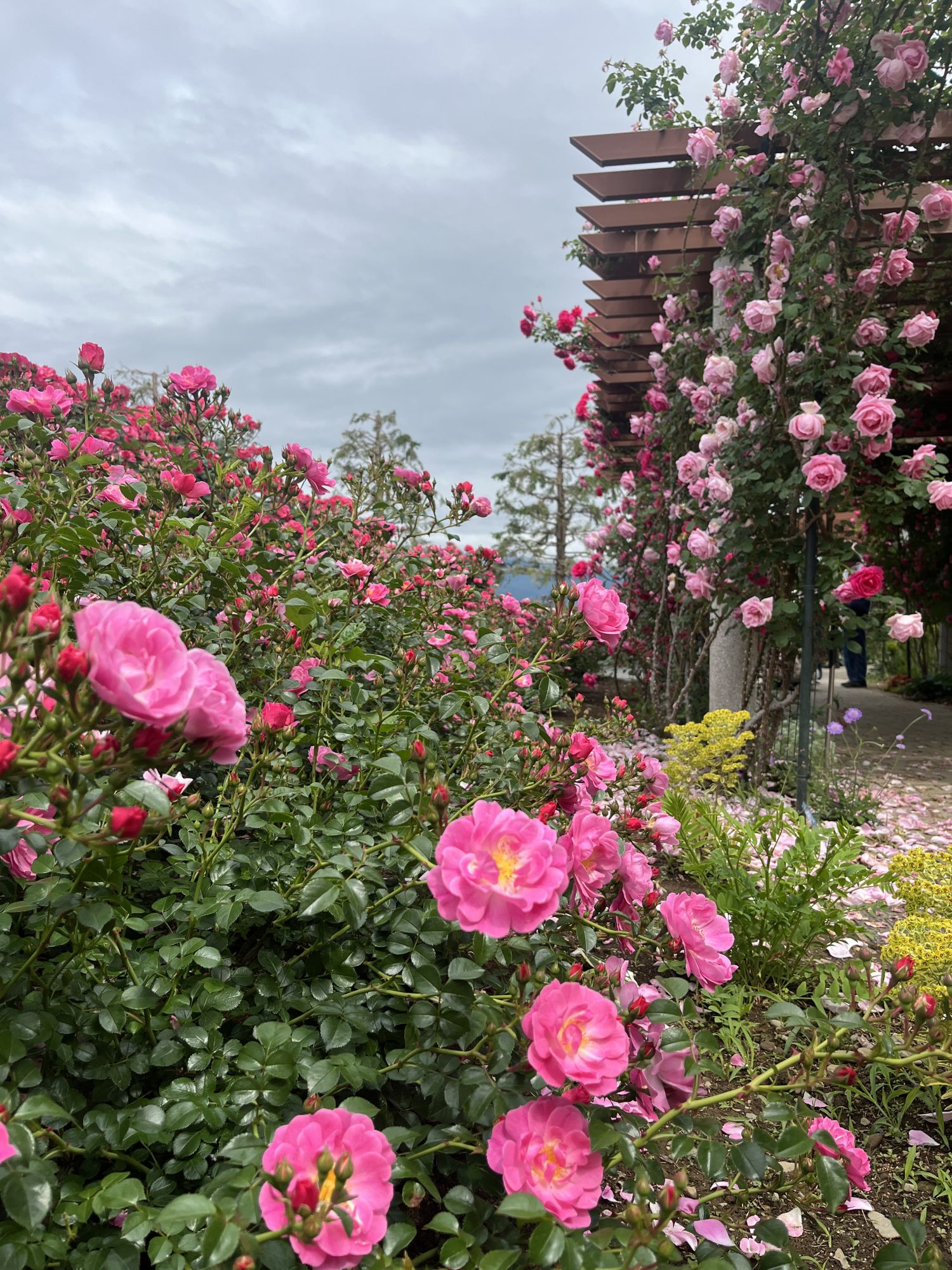 ดอกกุหลาบมักจะเริ่มบานในช่วงปลายเดือนพฤษภาคมและบานเต็มที่ในเดือนมิถุนายน เมื่อคุณเดินเข้าไปในสวนกุหลาบจากที่จอดรถของโซน Flower Promenade คุณจะพบกับอุโมงค์กุหลาบริมถนน อุโมงค์กุหลาบทรงโค้งที่บานสะพรั่งเป็นจุดที่เหมาะแก่การถ่ายรูปเป็นอย่างยิ่ง