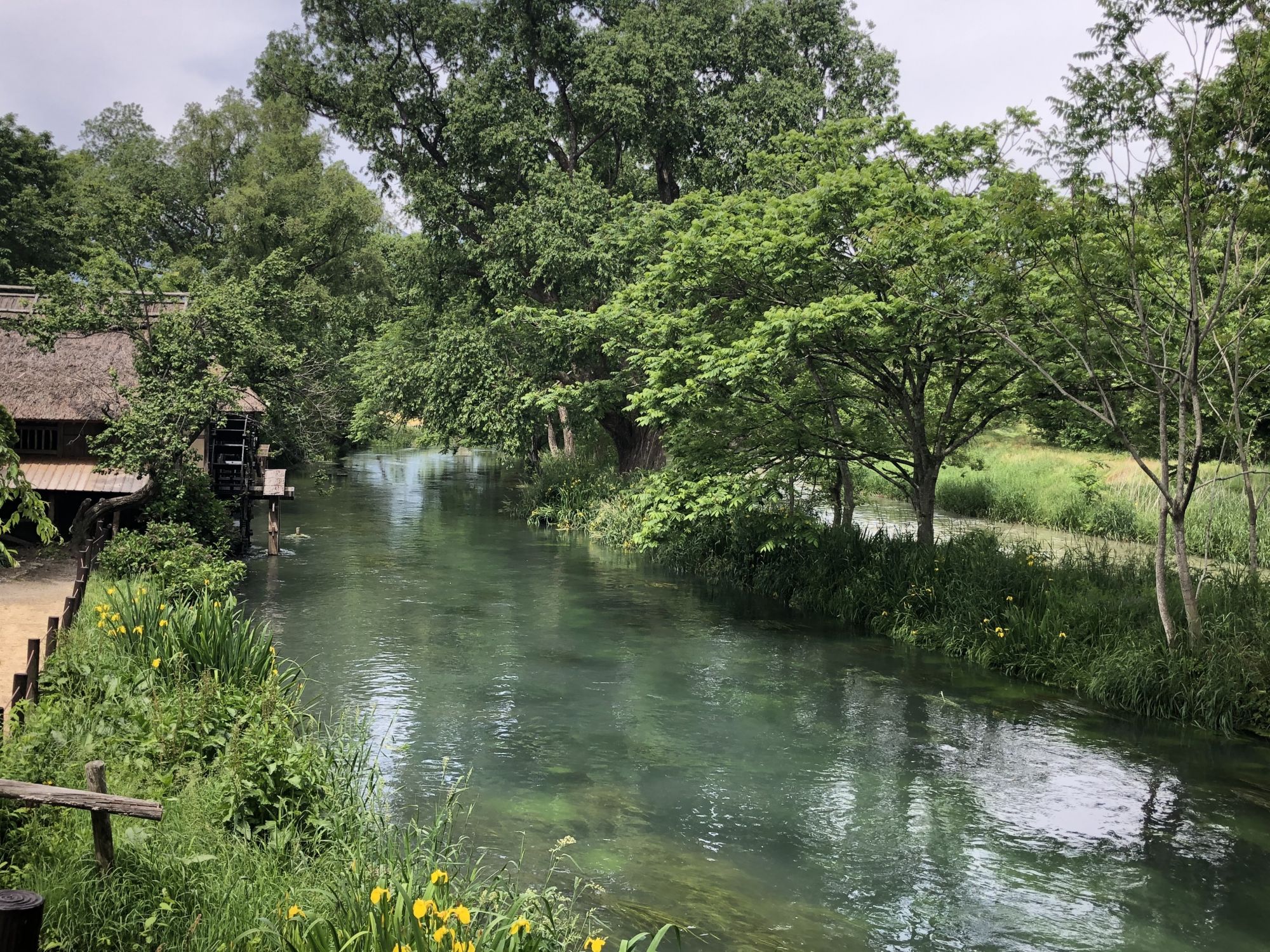เมื่อหันหน้าเข้าอาคารที่มีร้านขายของที่ระลึก ฝั่งซ้ายมือจะมีลำธารน้ำใสแจ๋ว น้ำที่ไหลเป็นน้ำใต้ดินที่เกิดจากการละลายของหิมะบนเทือกเขาแอลป์ญี่ปุ่น ช่วงที่ไปเป็นช่วงเดือนพฤษภาคม ไปหลังจากที่ฝนตก 2 วันน้ำในลำธารเลยไม่ใสเท่าไหร่