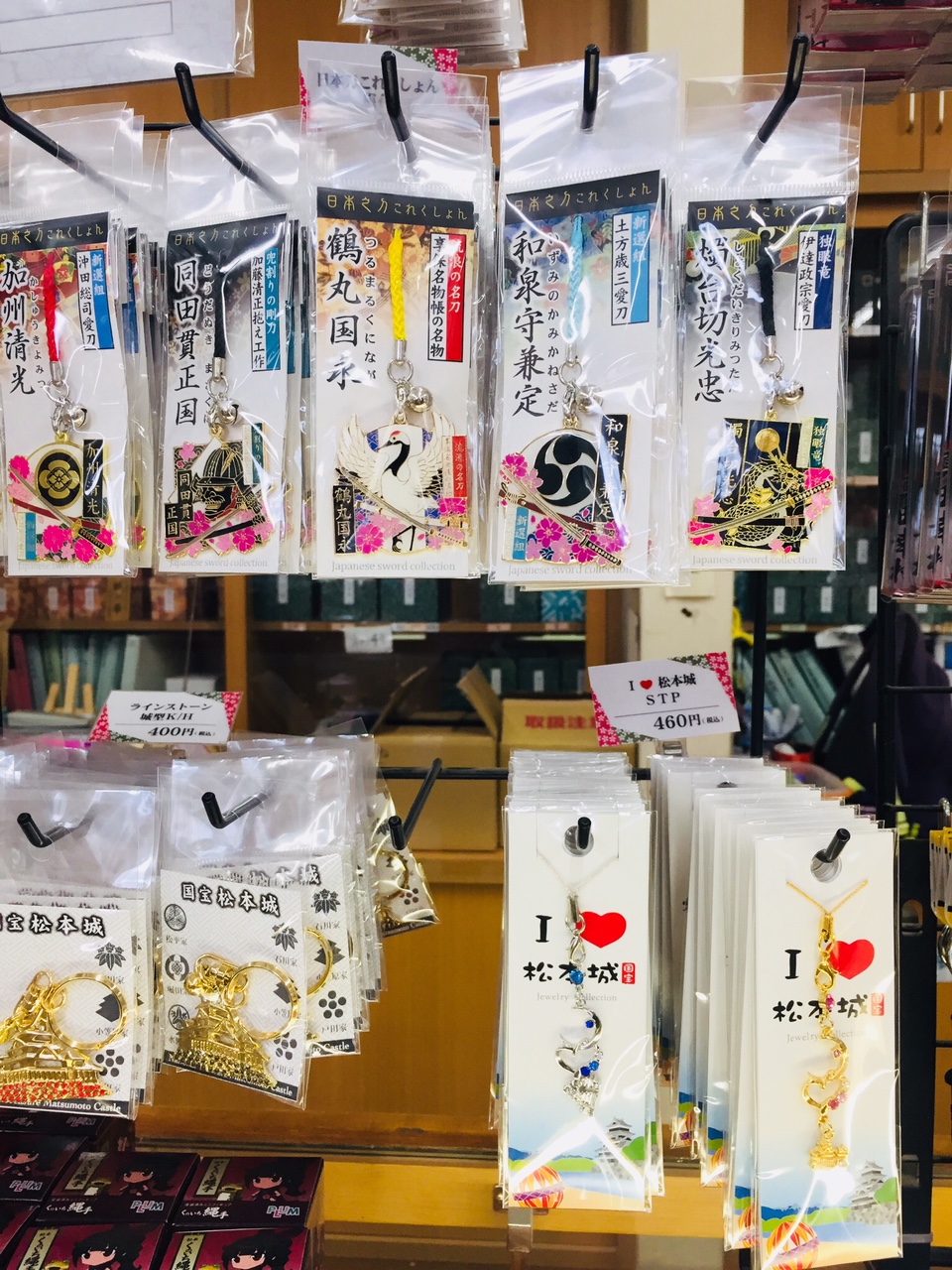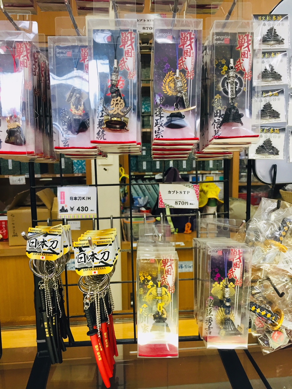 นอกจากนี้ ที่ร้านขายของฝากในปราสาทมัตสึโมโต้ยังมีความพิเศษกว่าที่อื่นๆ ตรงที่มีหมวกนักรบขนาดเล็กและดาบญี่ปุ่นจำหน่ายอีกด้วย