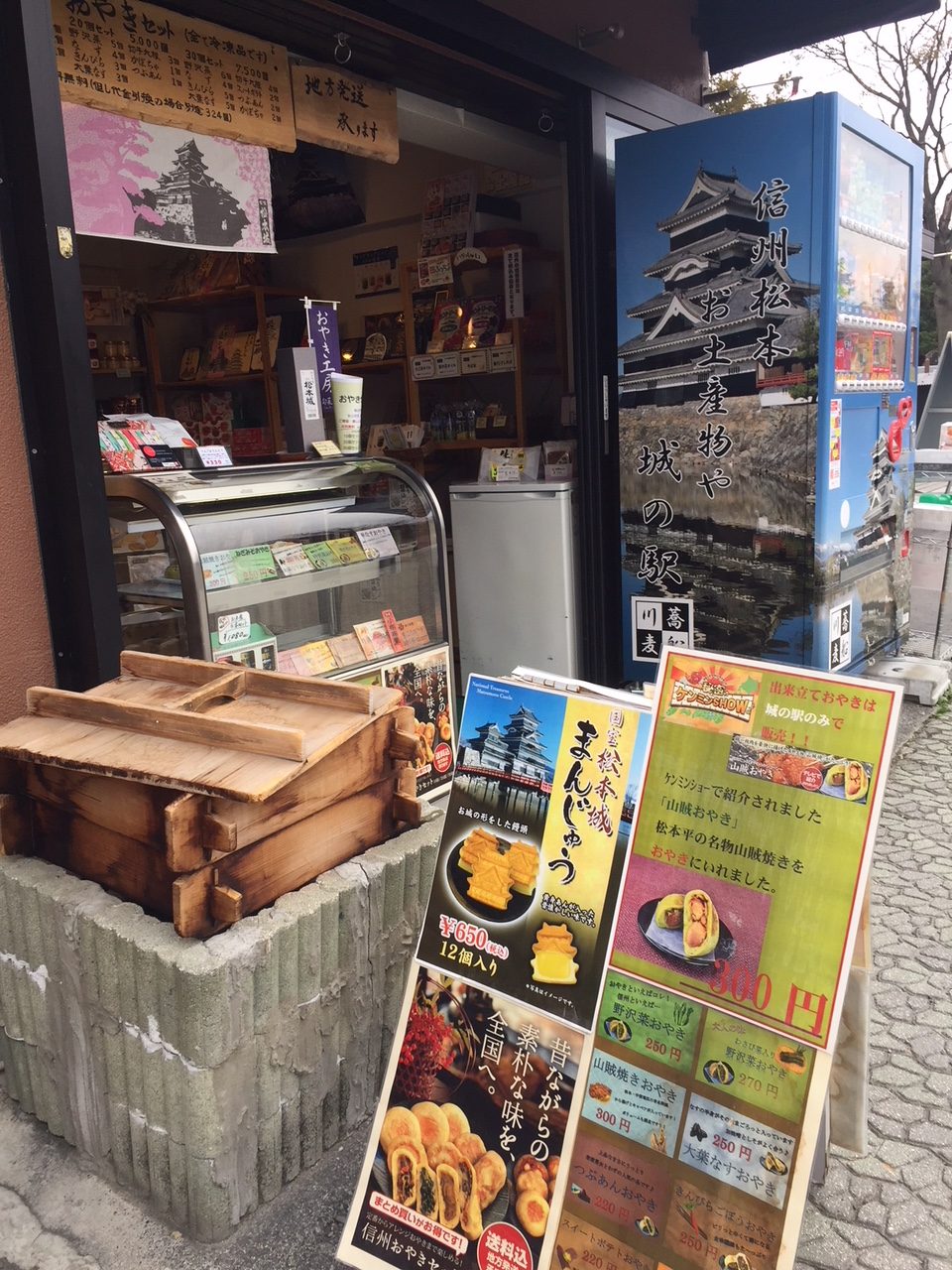สถานที่ท่องเที่ยวหลายแห่งในประเทศญี่ปุ่นมักจะมีของฝากเฉพาะท้องถิ่นจำหน่ายในแต่ละเมือง ส่วนใหญ่จะนำผลิตภัณฑ์ในท้องถิ่น เช่น ผลไม้ ผัก เนื้อวัว ผลิตภัณฑ์จากนม โมจิ ซึ่งเป็นผลิตภัณฑ์ที่มีชื่อเสียงของท้องถิ่นนั้นๆ มาแปรรูปเป็นของฝากที่มีขายเฉพาะเมืองหรือเฉพาะท้องถิ่นนั้นๆ เมืองมัตสึโมโต้เองก็มีของฝากที่น่าสนใจหลายอย่าง ในวันนี้จะพาไปชมของฝากบางส่วนที่ขายในร้านขายของฝากที่ปราสาทมัตสึโมโต้