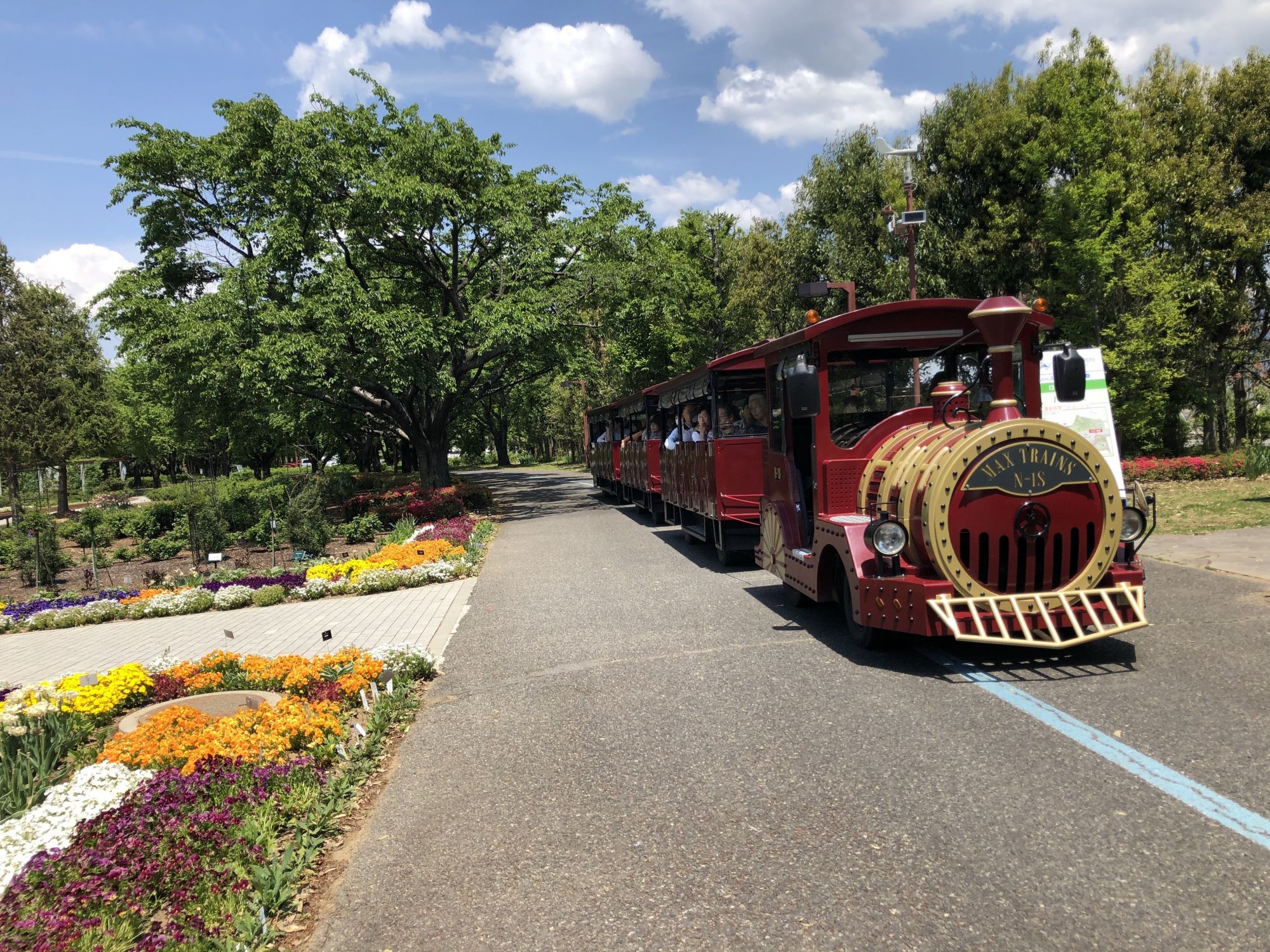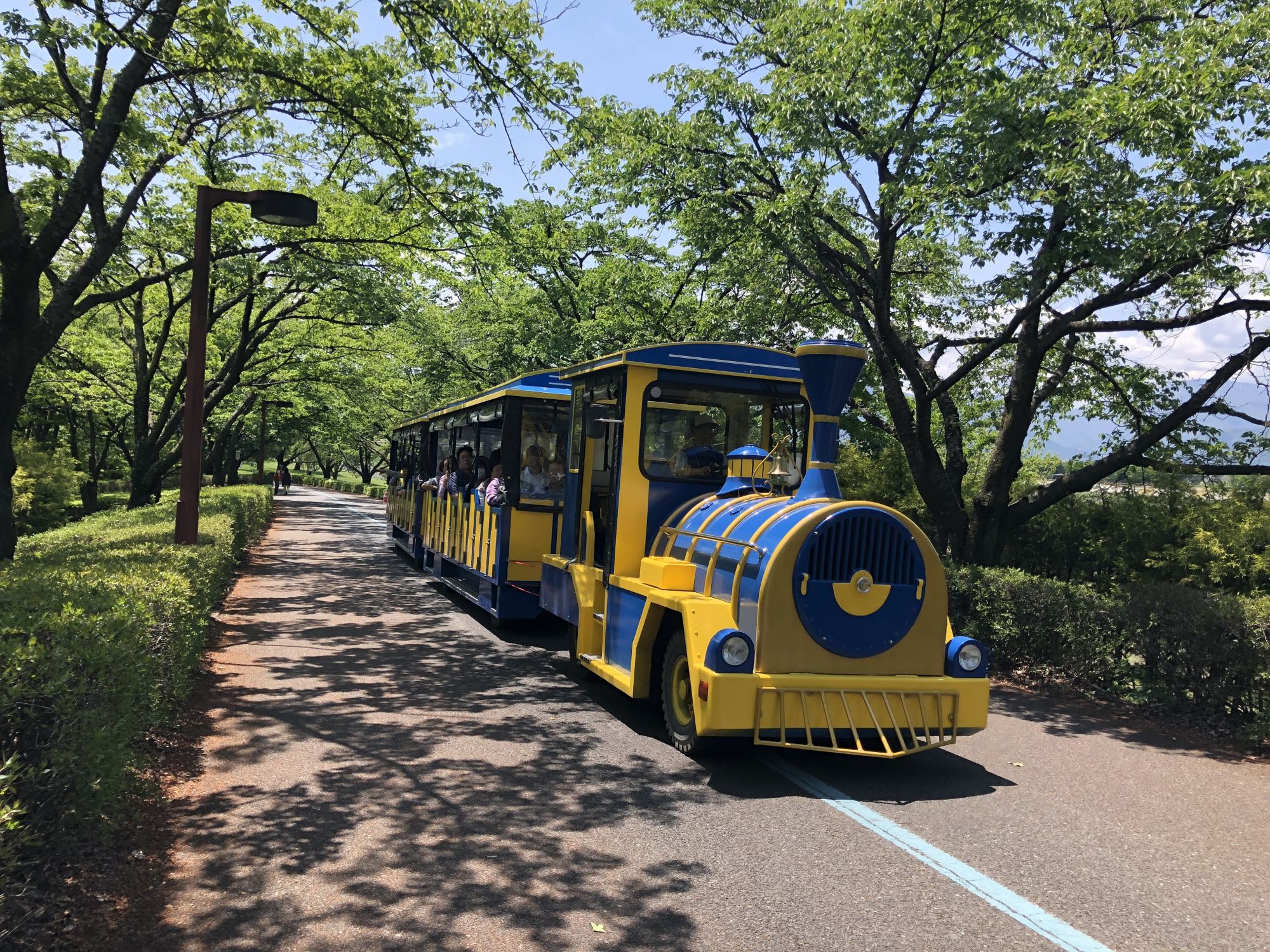 เนื่องจากพื้นที่จัดงานค่อนข้างกว้างมากเป็นระยะทางหลายกิโล จึงมีรถไฟให้บริการเพื่ออำนวยความสะดวกด้วยค่ะ โดยรถไฟจะจอดเฉพาะตามจุดรับส่งที่กำหนดเท่านั้น สำหรับการนั่งรถไฟเที่ยวชมภายในงานจะมีค่าใช้จ่ายครั้งละ 300 เยนค่ะ