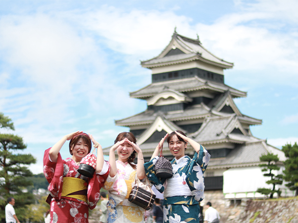 ถ้าอยากเพิ่มสีสันให้กับการเดินทางในมัตสึโมโตะ แนะนำให้เช่ากิโมโนที่ “ฮานาโกะมิจิ” เลือกกิโมโนที่ถูกใจจากลายและสีที่มีให้เลือกมากมาย แล้วให้ช่างผู้เชี่ยวชาญช่วยแต่งตัวในสไตล์ญี่ปุ่น ภาพถ่ายที่มีฉากหลังเป็นปราสาทมัตสึโมโตะหรือถนนประวัติศาสตร์ จะกลายเป็นความทรงจำพิเศษที่หาได้เฉพาะในญี่ปุ่น
