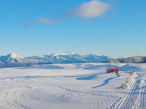 นั่งรถหิมะผ่านทิวทัศน์หิมะขาวโพลน