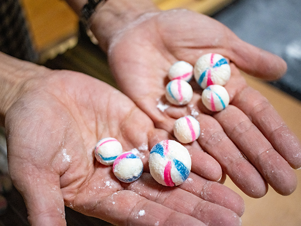 ที่ "ยามะยะ” ร้านลูกกวาดเก่าแก่กว่า 300 ปีใกล้สถานีมัตสึโมโตะ คุณจะได้เพลิดเพลินการทำลูกกวาดด้วยวิธีการและเครื่องมือแบบดั้งเดิม ลูกกวาดที่มีสีสันและลวดลายเหมือนงานหัตถกรรมท้องถิ่น “ลูกบอลมัตสึโมโตะ (Matsumoto Temari)” สามารถปั้นได้ไม่ยากแม้เป็นมือใหม่ด้วยคำแนะนำจากช่างฝีมือ ถือเป็นประสบการณ์การสร้าง “งานฝีมือที่กินได้” ลูกกวาดที่ทำเสร็จสามารถนำกลับไปเป็นที่ระลึกของการเดินทาง คุณสามารถจองเข้าร่วมกิจกรรมได้ตั้งแต่ 2 คนขึ้นไป เหมาะสำหรับการเดินทางกลุ่มเล็ก เช่น เพื่อน ครอบครัว หรือคู่รัก