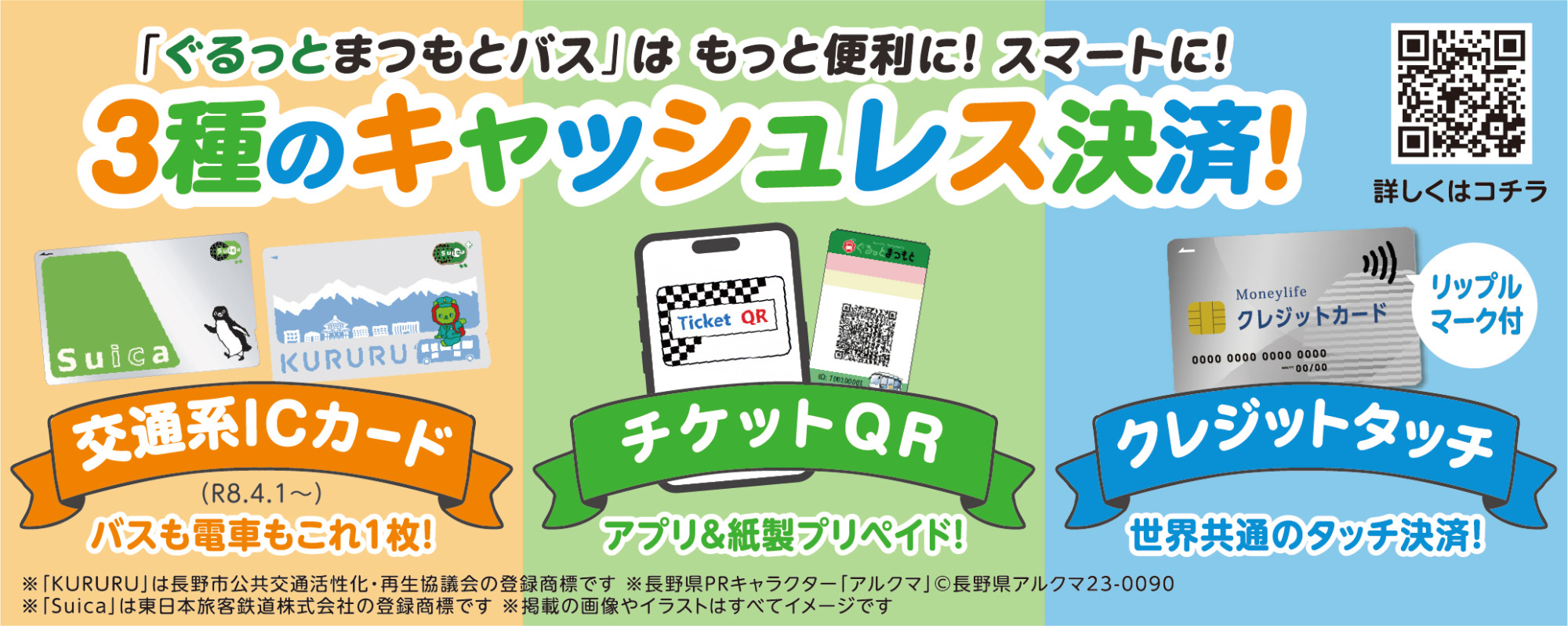 市街地の周遊から浅間温泉や美ヶ原温泉まで利用できますので、ぜひ利用いただき、お得にキャッシュレスで松本市内を巡りましょう。