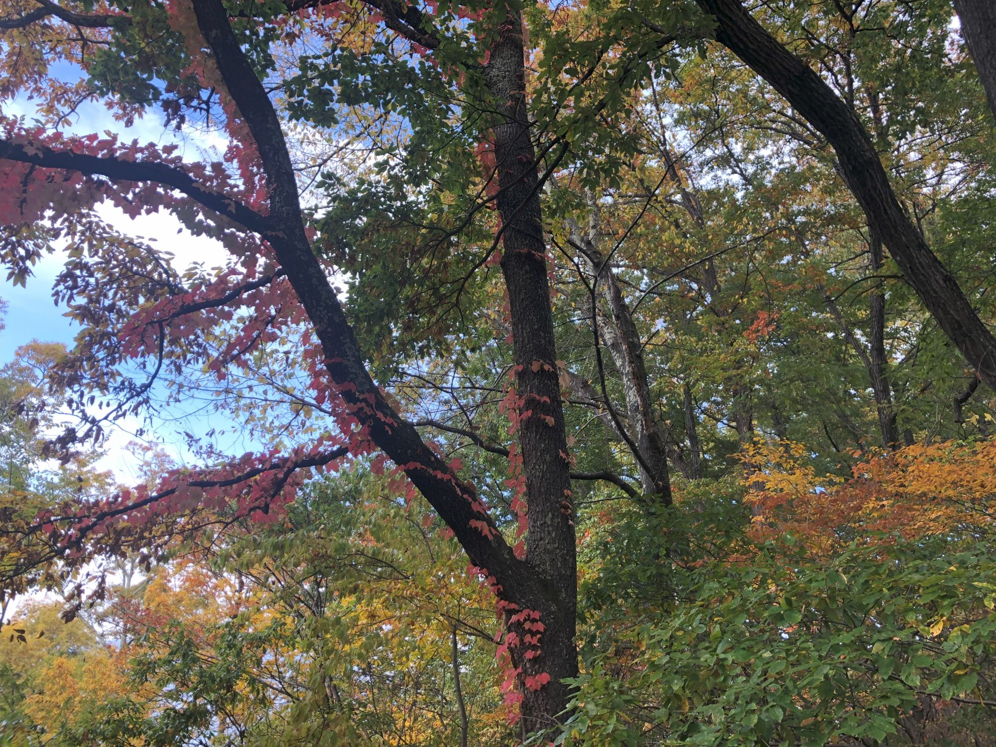 再往里走,又有这样的一树数色!在告诉我们是这样地一叶一叶渐渐变红的