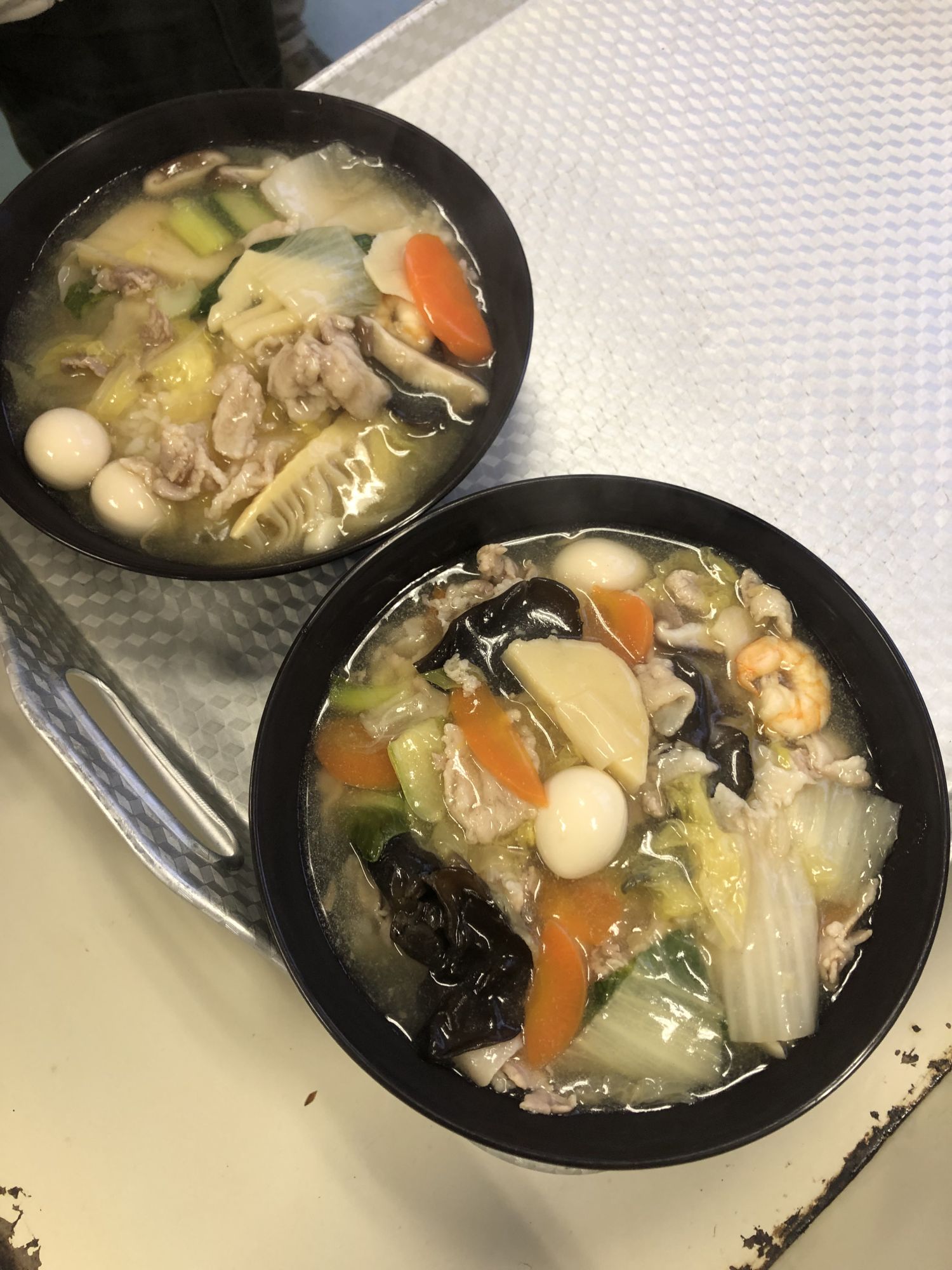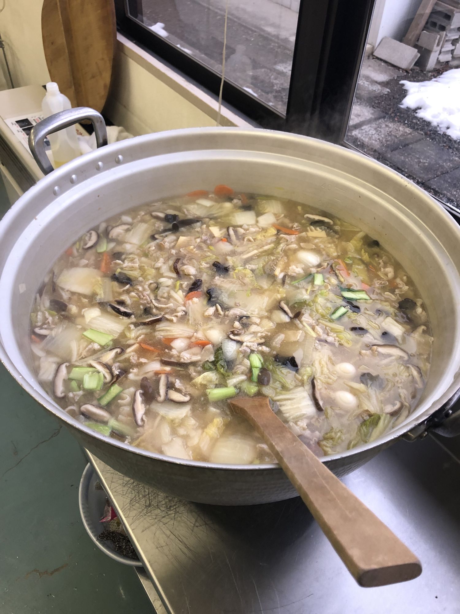 冈田公民馆的料理活动“八宝菜”(中華丼) 周日, 2月 26, 2023 ♥29 接着上次的公民馆活动,前几天又参加了一次料理活动。每月一次,让所住居民一起作道菜,免费让周围的大人小孩儿聚在一起交流。这次由我来作中华料理“八宝菜”。做多少呢?一问,吓一跳:六十人!! 先是材料:猪肉片、虾、鹌鹑蛋、白菜、胡萝卜、洋葱、笋片、蘑菇,八宝菜嘛,就凑八样。 六十人的量,那得挑个大锅 先炒肉,再炒菜,然后添水加佐料,最后加淀粉,成了! 提示出过敏信息,然后上桌 对了,八宝菜在日本又名“中华盖饭”(中華丼)。嗯,味道不错! Tweet