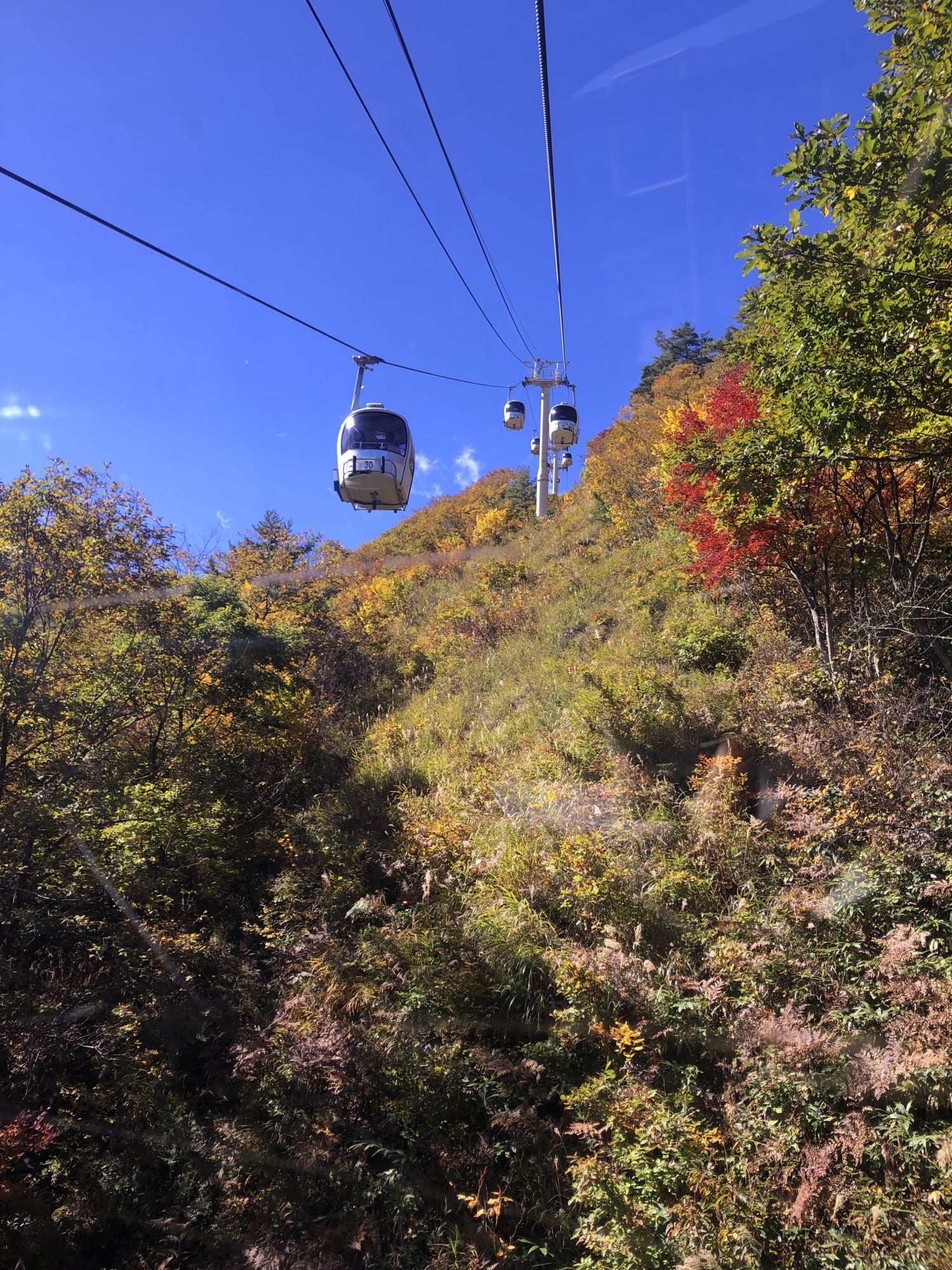 到了停车场,放下车,买了登山票,乘索道往山上走。