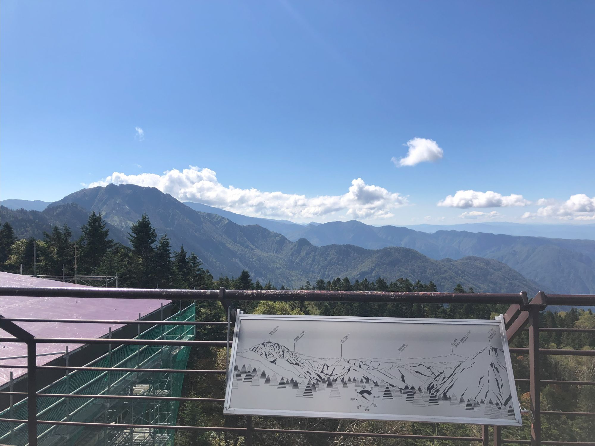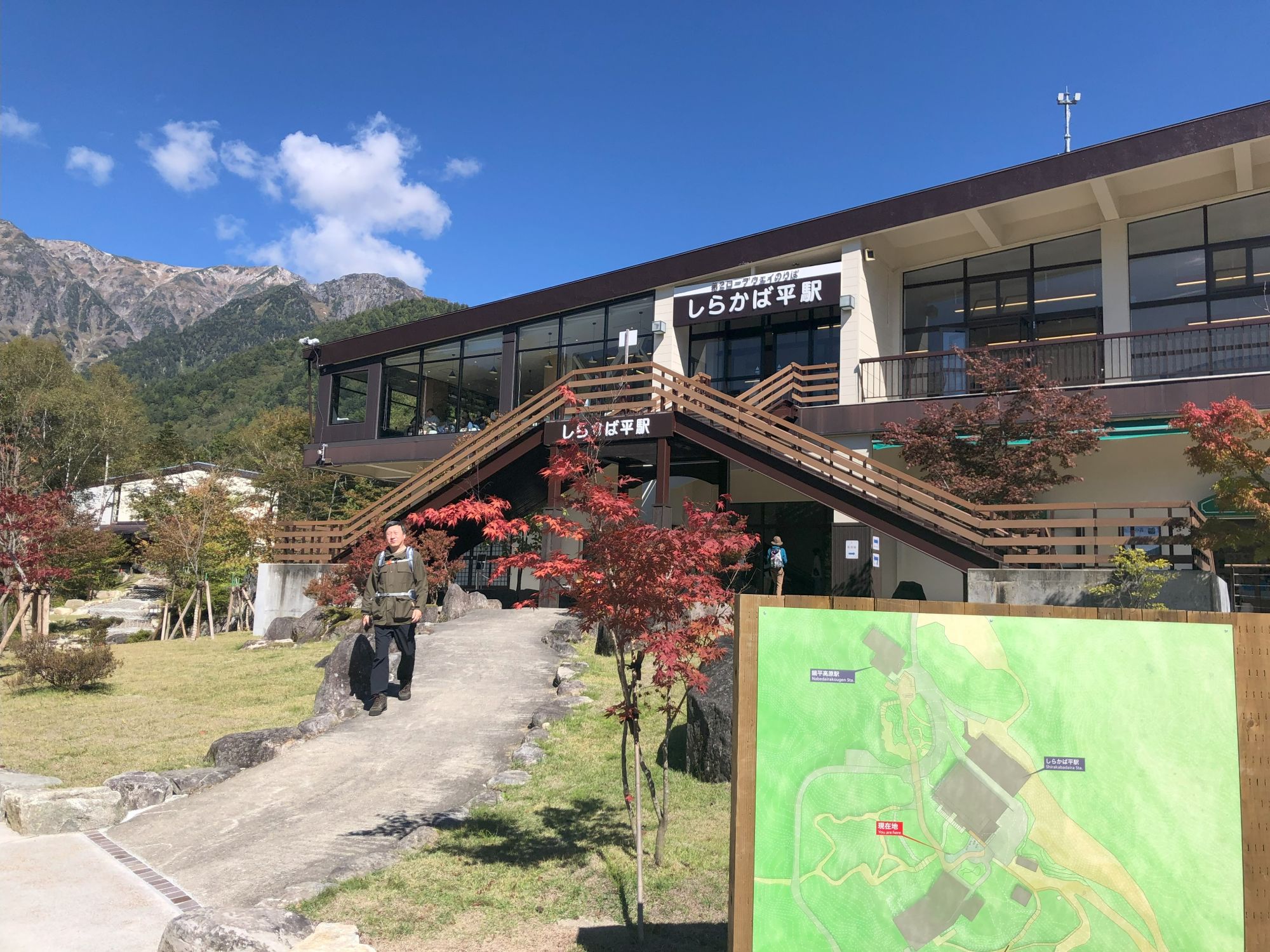 旅程大约需要2小时,因到中途与著名的上高地同路线,稍有些堵车,但沿途可欣赏乡村的自然美景,只可惜还不到满山红叶的深秋。不知不觉就到了新穗高的山脚下坐缆车的地方:白桦平站。