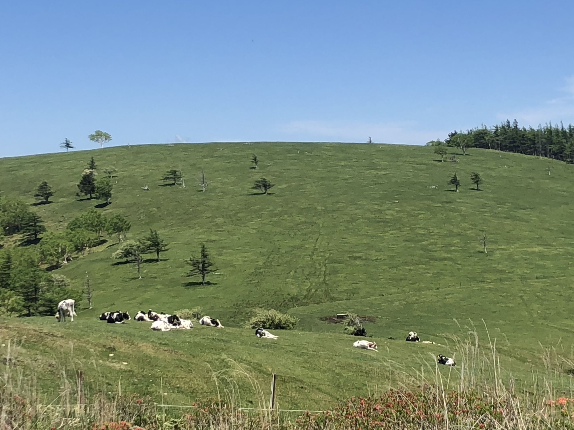 哼着歌再往山上开开,有些杜鹃还未开,却偶遇牧场上悠闲地牛们