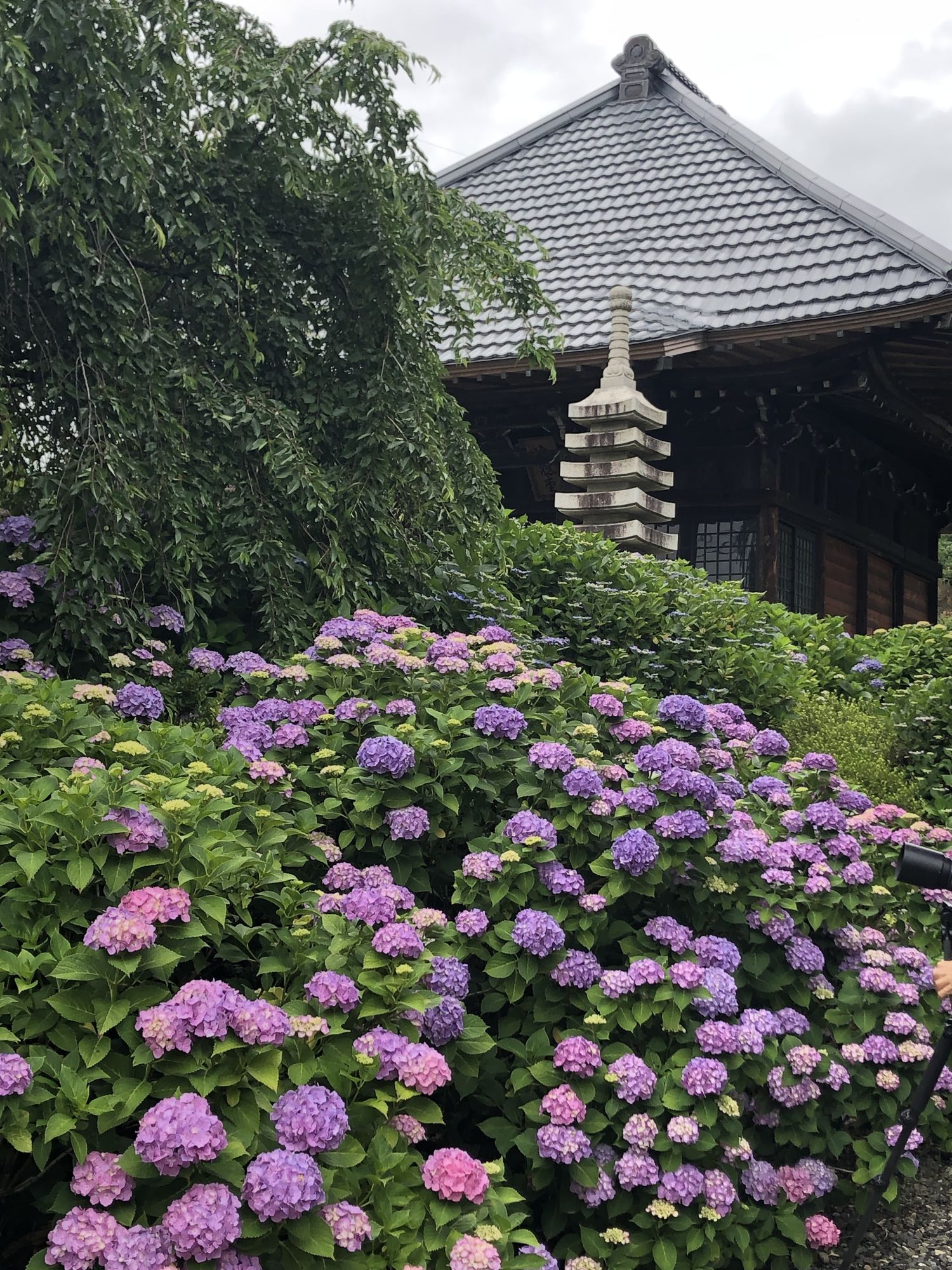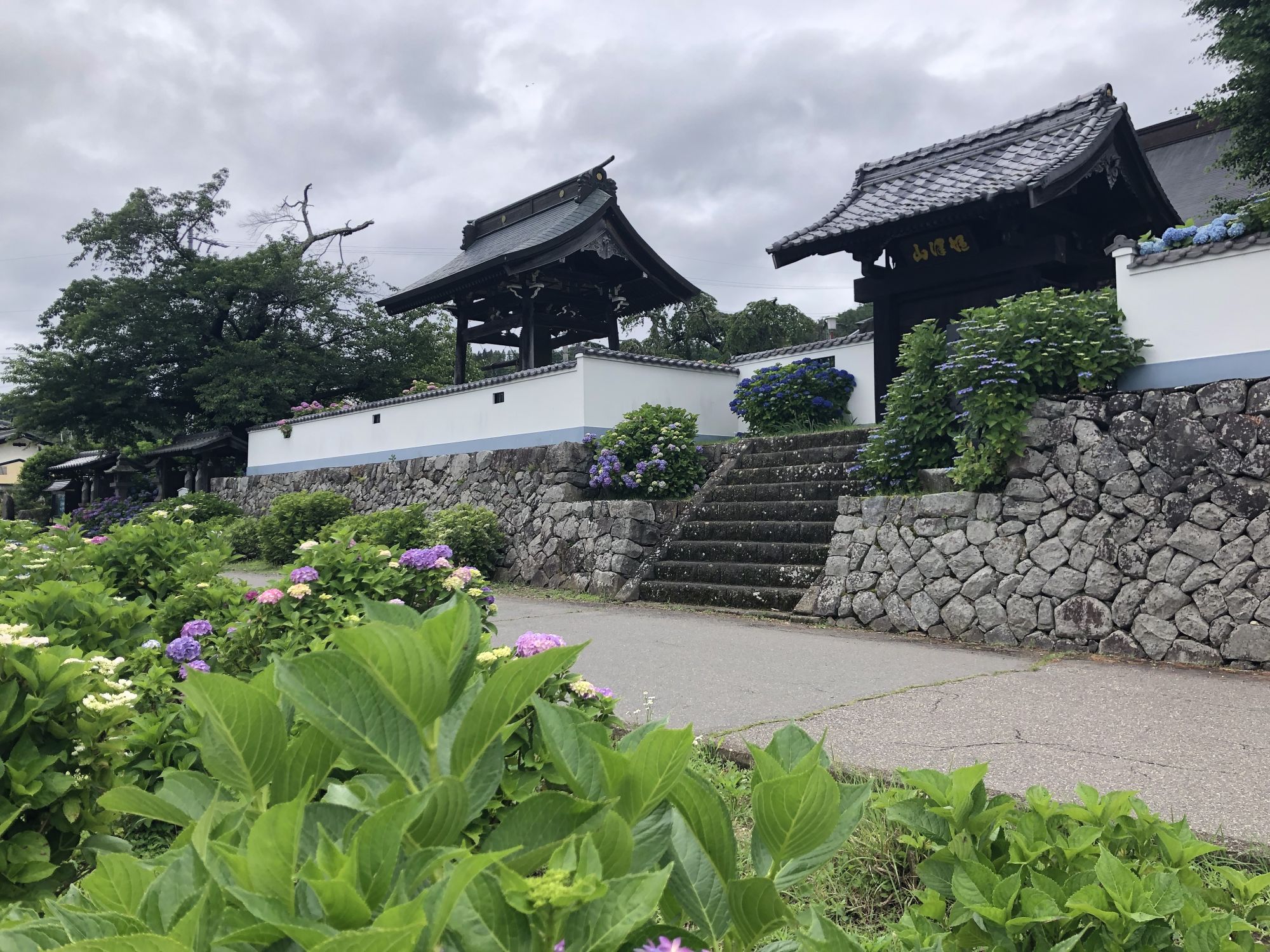 松本市有两座著名的寺庙,分别是法船寺和弘长寺,它们都以美丽的绣球花而闻名。先去看看法船寺。
