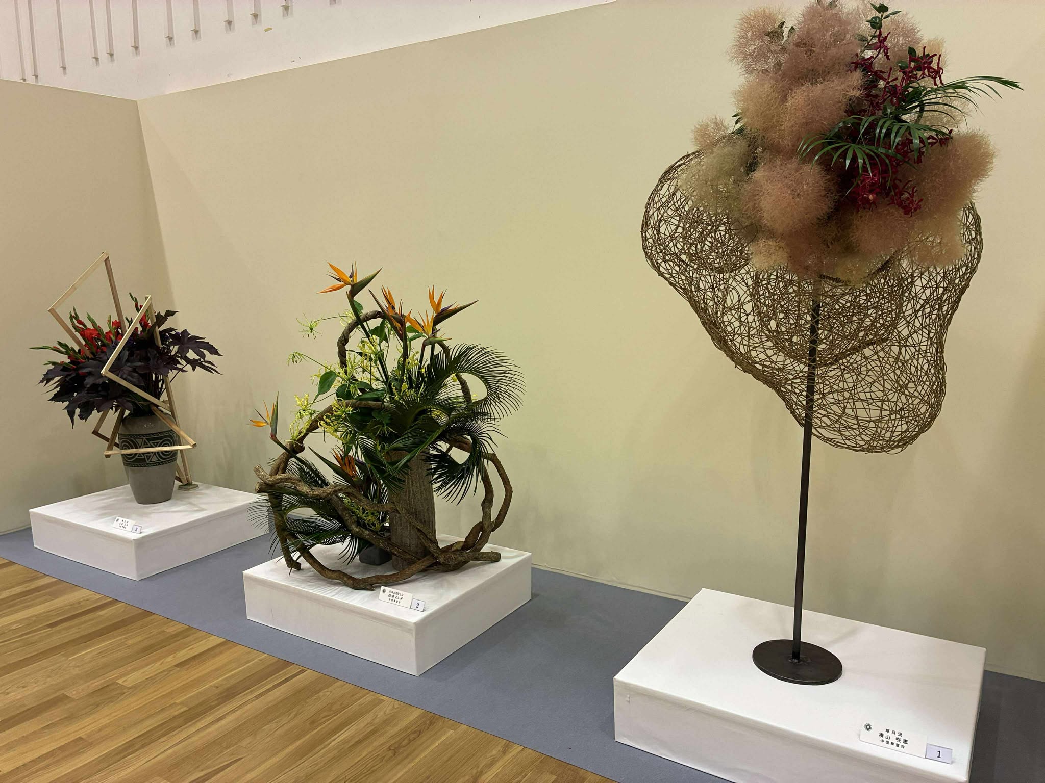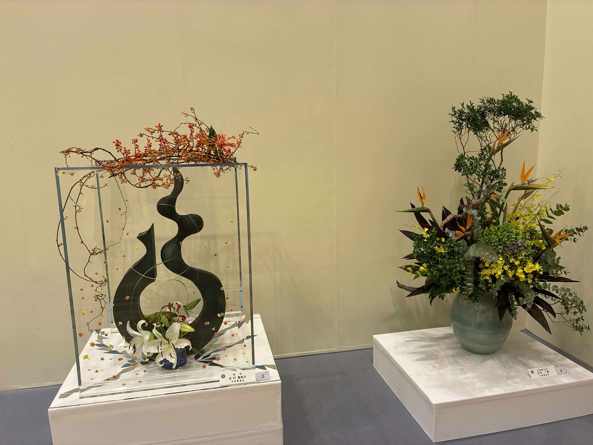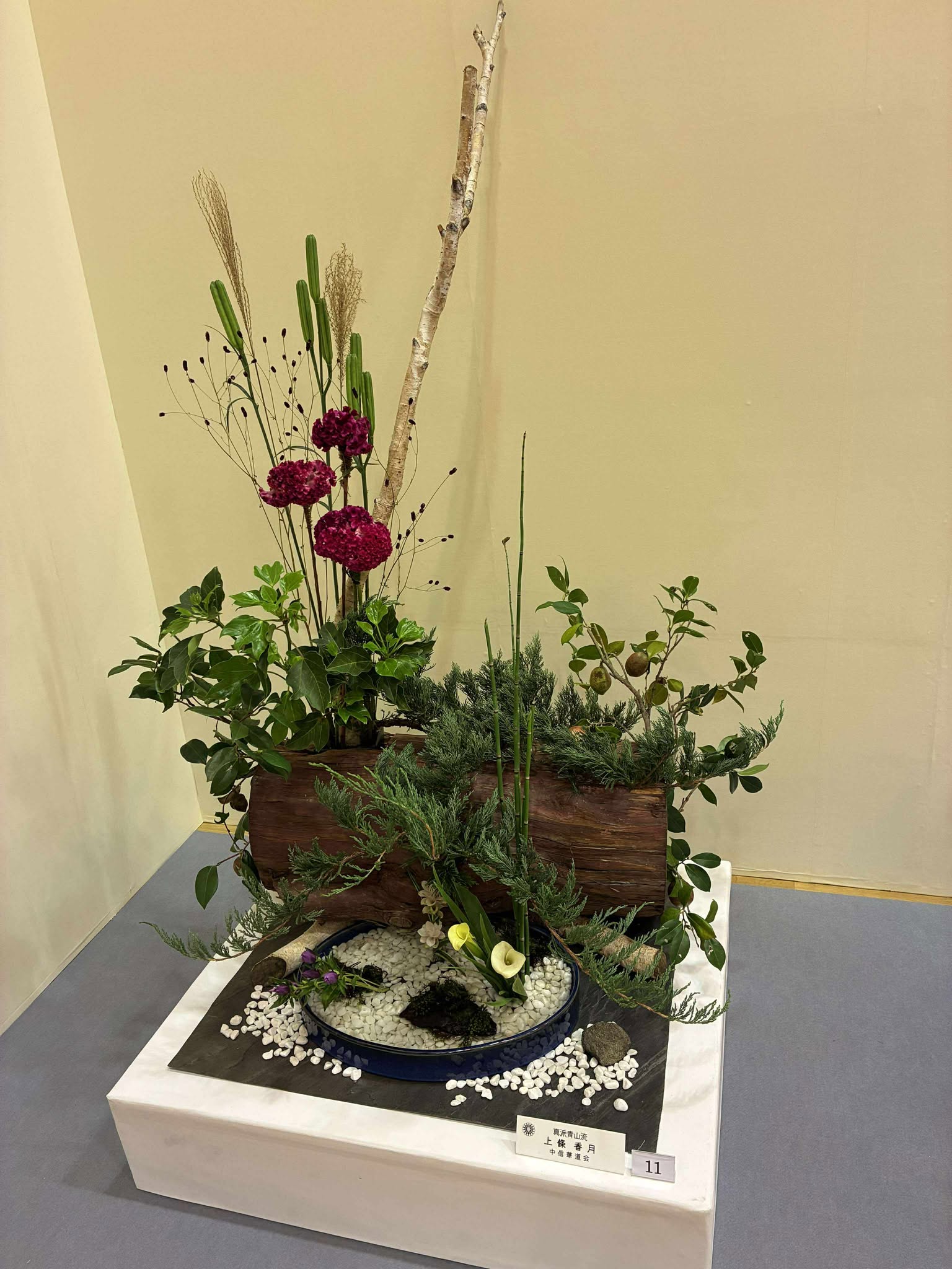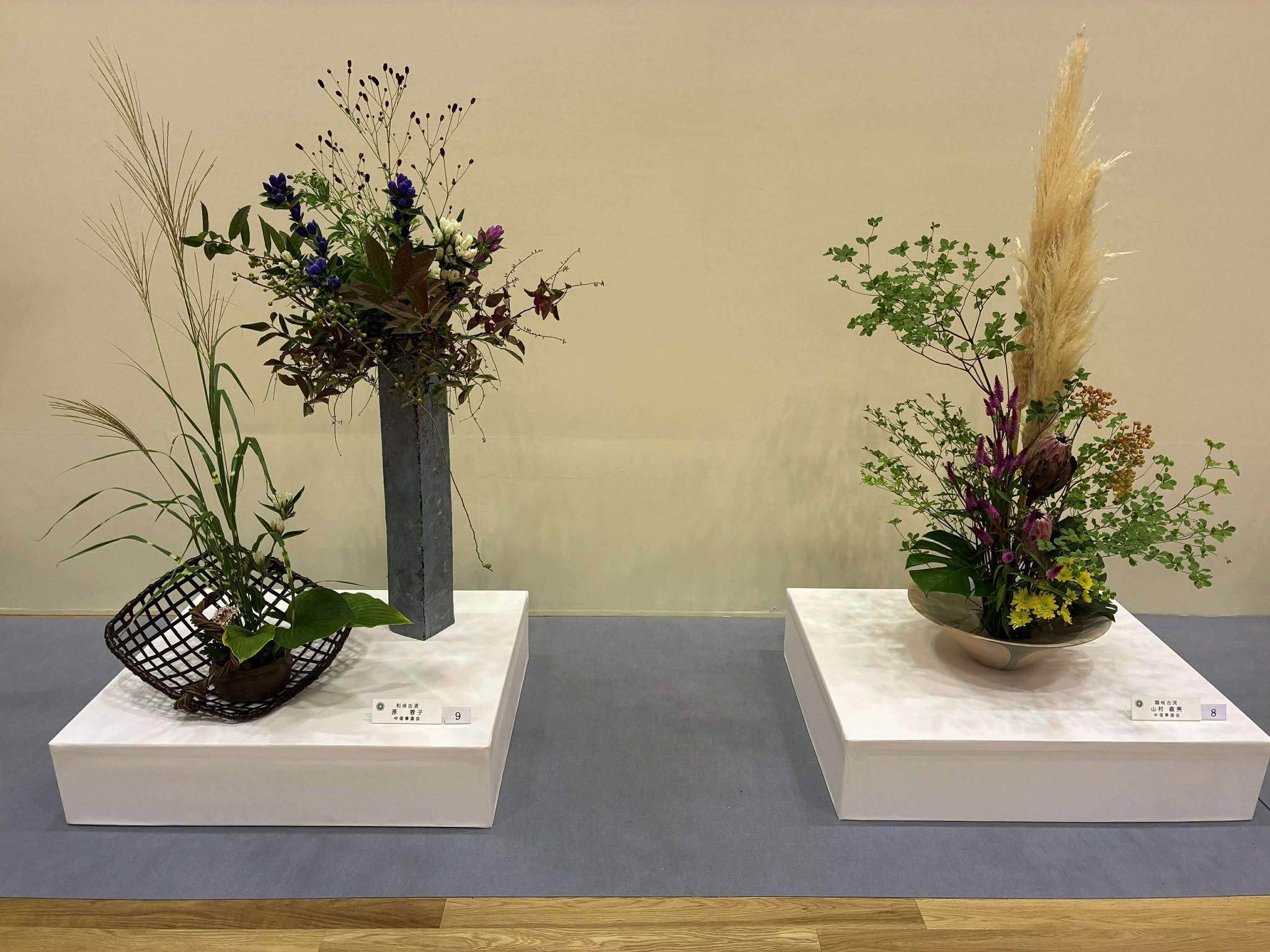 因为正值初秋,展品体现了入秋后草木花卉的变化,以精致构图与深厚技艺呈现生命的流转。部分作品更融入信州当地素材,如高原野花与手工陶器,体现地域文化与自然美的融合。