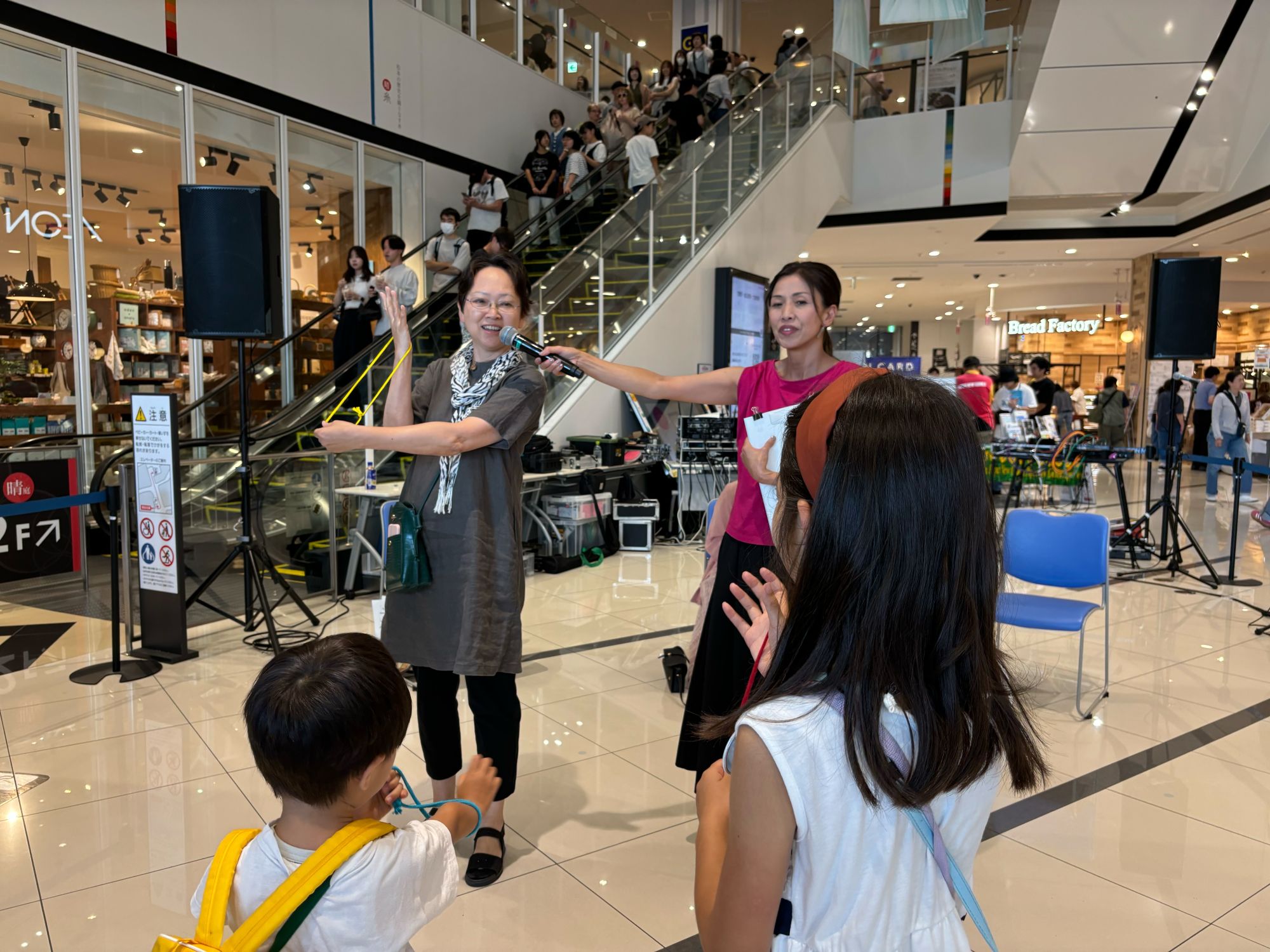 以下是在市民文化节上的多文化共生体验角,可以直接和外国籍市民用外语打招呼、猜谜语等