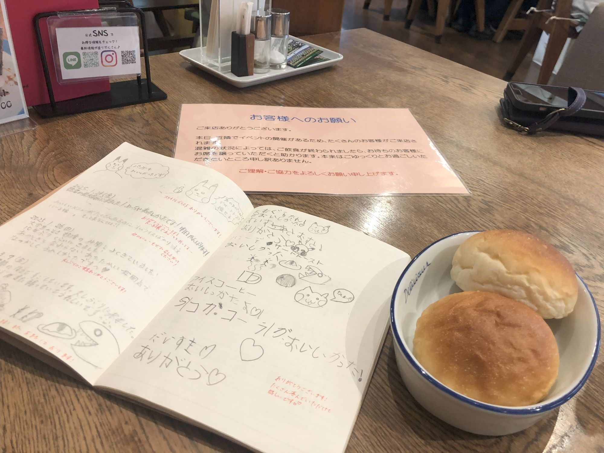 发现桌子上还有记事本,打开一看,是客人和店员的交换笔记