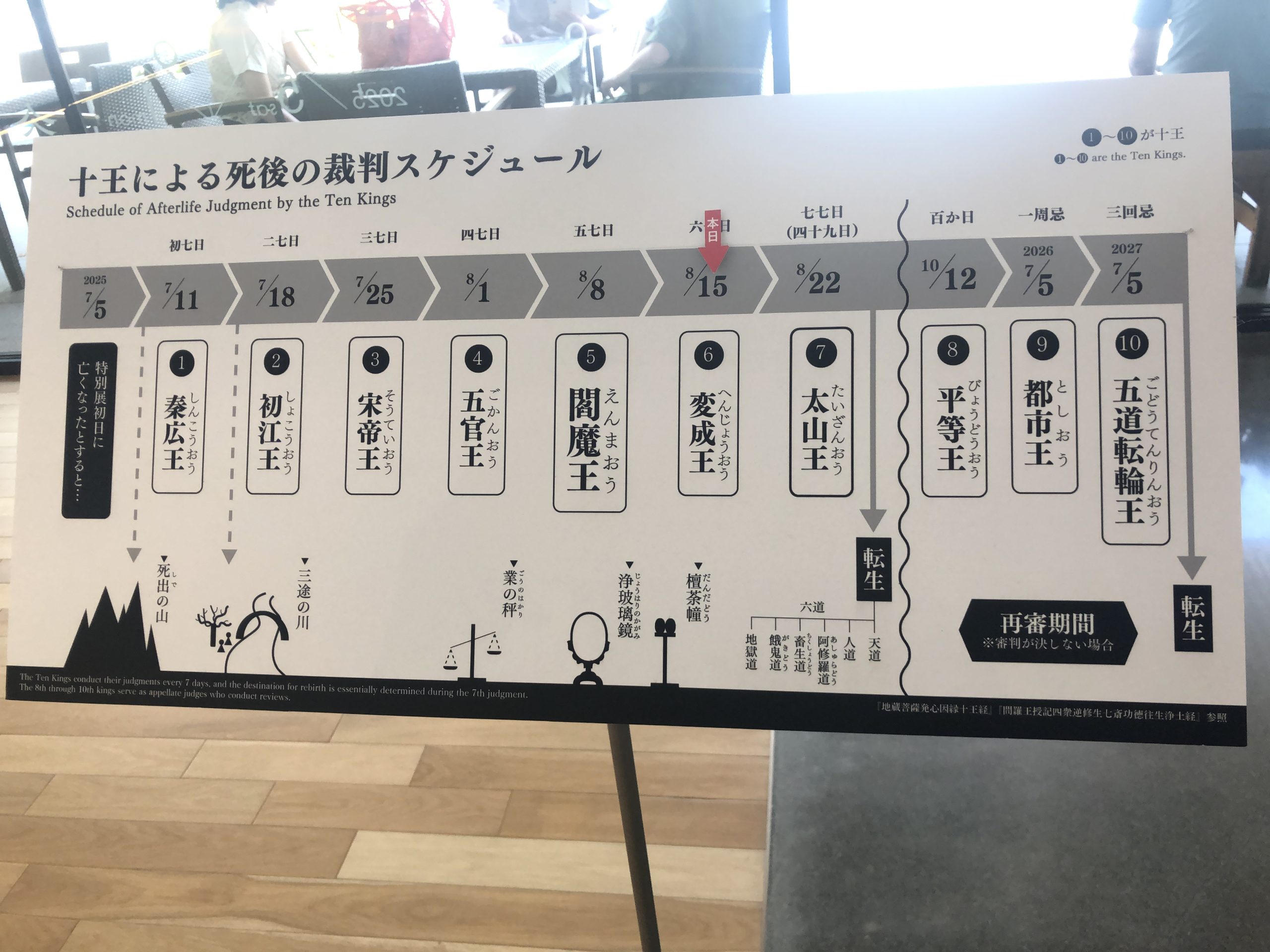 说明的大致内容是说,在佛教的冥界信仰中,「十王」是负责审判亡者的十位冥府之王。他们的形象既庄严又令人敬畏,象征着死后世界的秩序与公正。