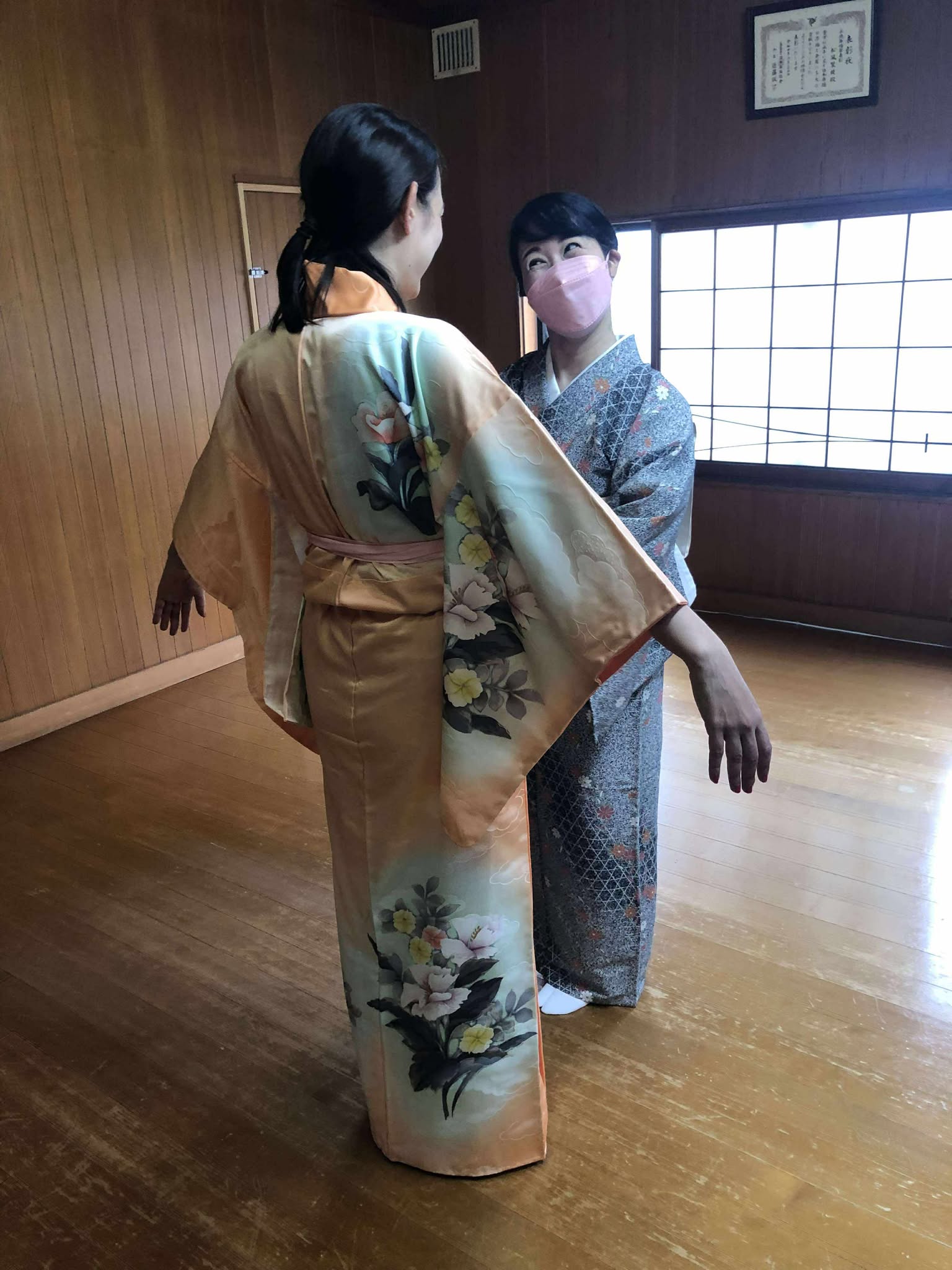 当天我和另一位意大利籍女士一起参加,由舞蹈家夫人松风枝舞姬教我们穿和服