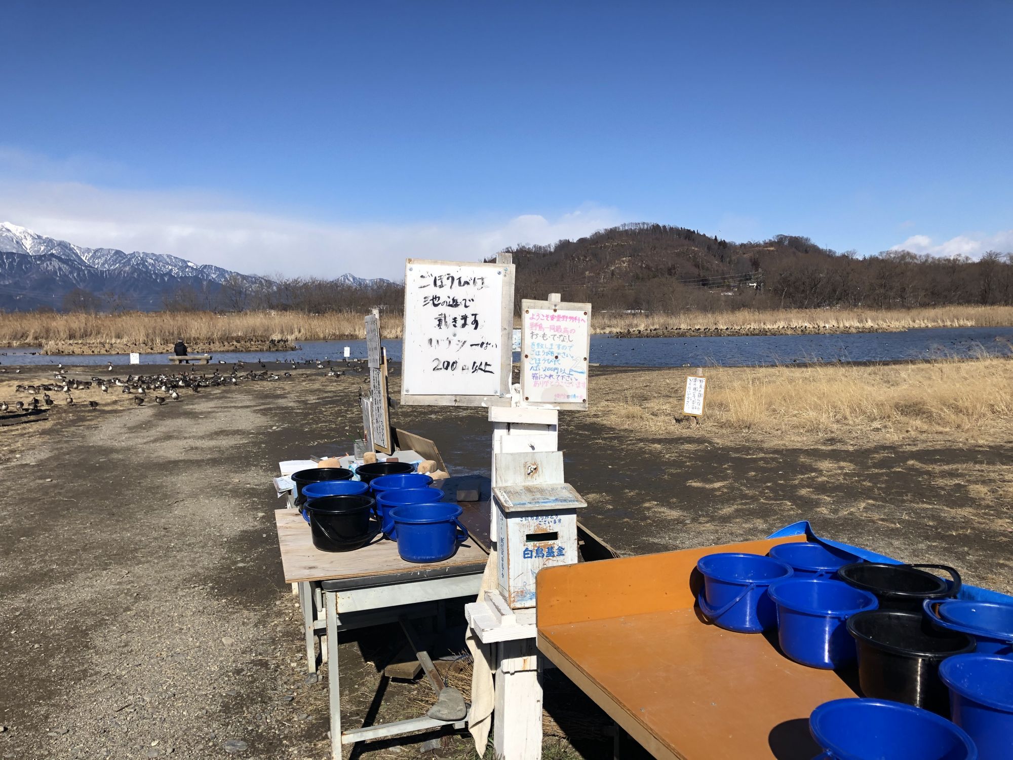 松本附近最有名的一处白天鹅飞来处在安昙野市明科中川手的御宝田遊水池,从松本市中心开车大概半小时左右。