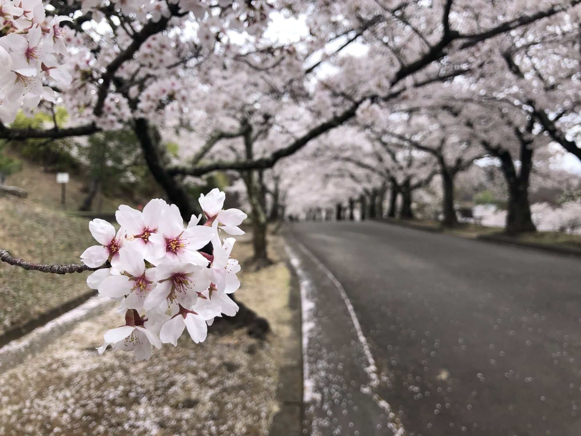 城山公园,往年赏樱的私家车会排成长队,但今年因疫情及阴雨天的影响,人很少。