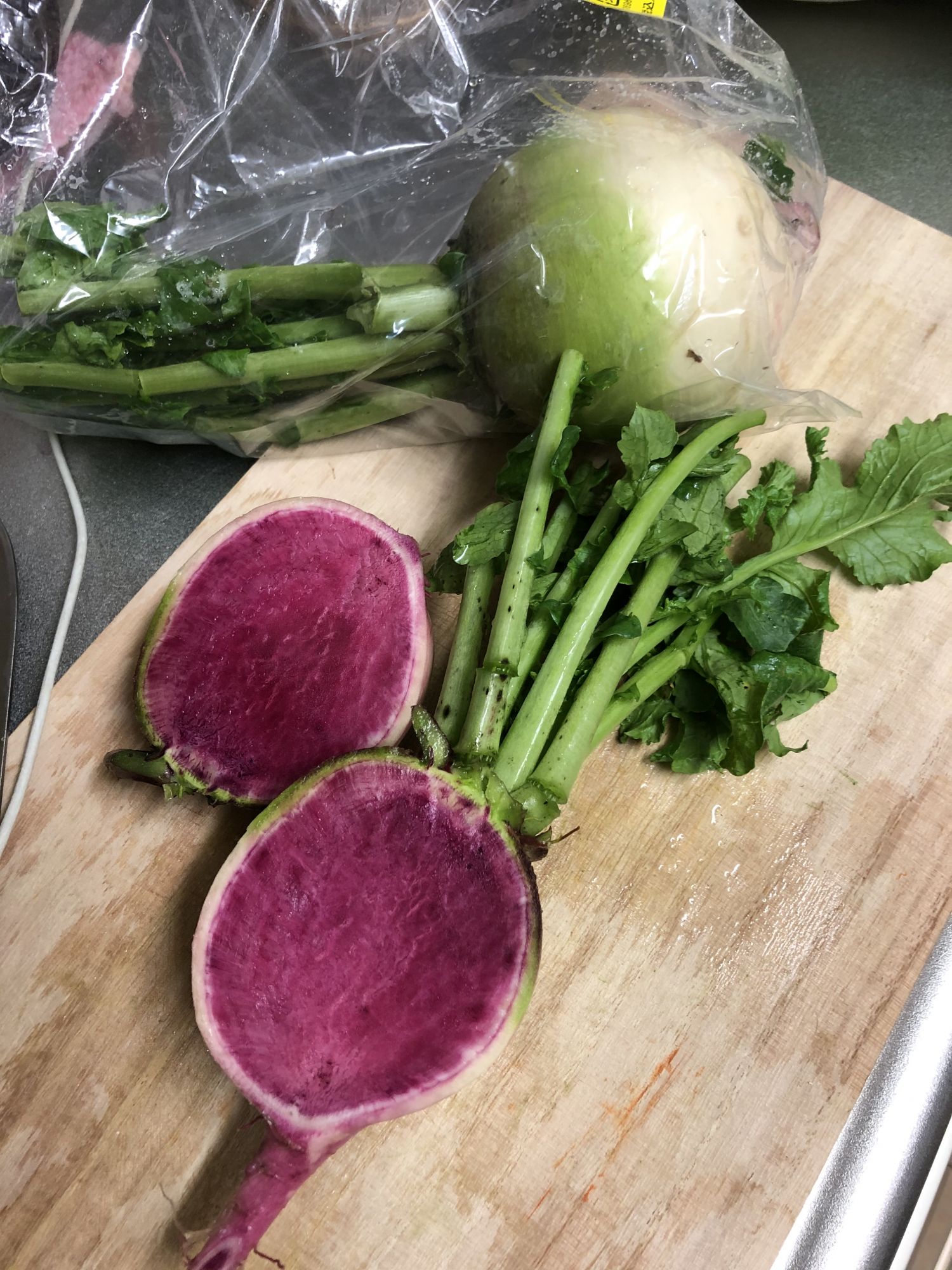 拔完花生回家的路上,路过今井农贸市场,又见到一些小时候在国内常吃,但在日本很少见的食物:心里美萝卜、灵芝。