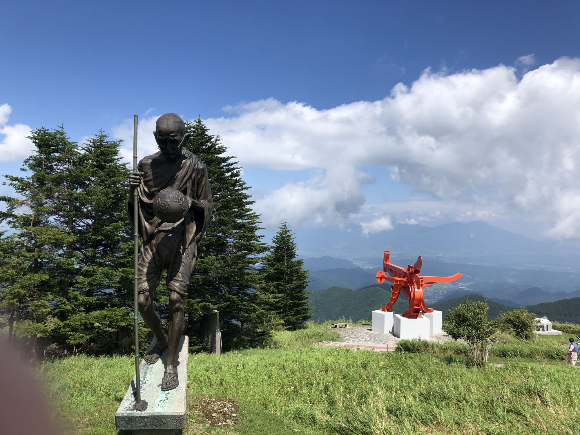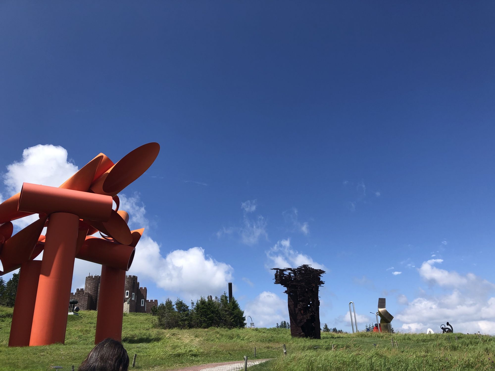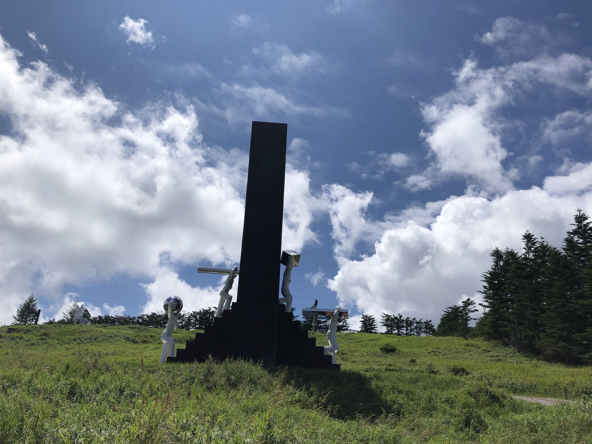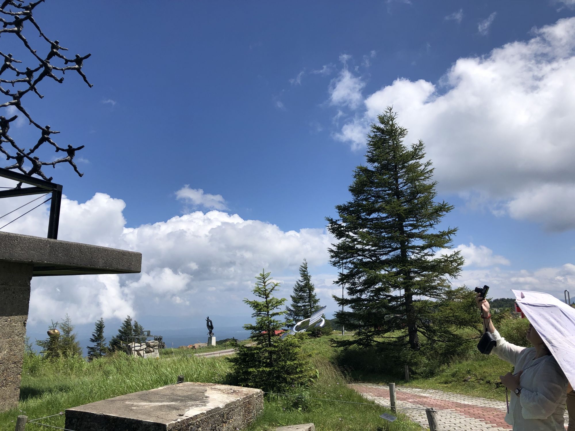 美原高原露天美术馆 其他 周五, 8月 30, 2019 ♥47 前几天,陪从国内来自由行的老同学,从松本市内开车去了美原高原。山下30多度,很是闷热。可到了海拔2000米的山上, 被凉爽的清风吹得不得不多添了件外衣。高原有牧场、电波塔,可远眺脚下起伏的山峦。但更值得推荐的是这野外雕塑博物馆。 作品名:大拇指 作品名:进化亲戚 作品名:风之摇 海拔2000米处的山峦 红与蓝的穿梭 美术作品 美术作品 美术作品 牧场的信州牛 还有许多雕塑作品,请参考博物馆网页https://www.utsukushi-oam.jp Tweet