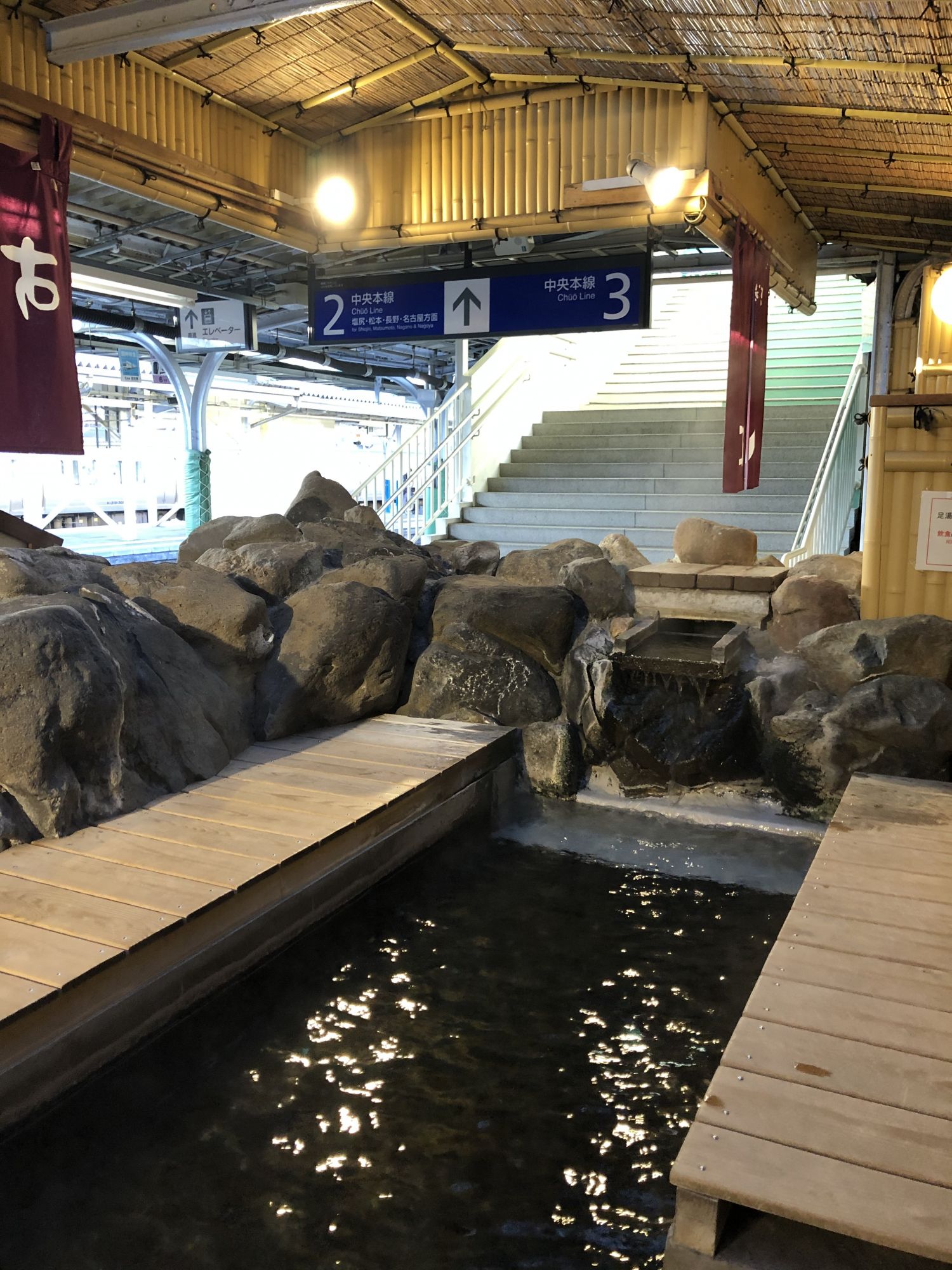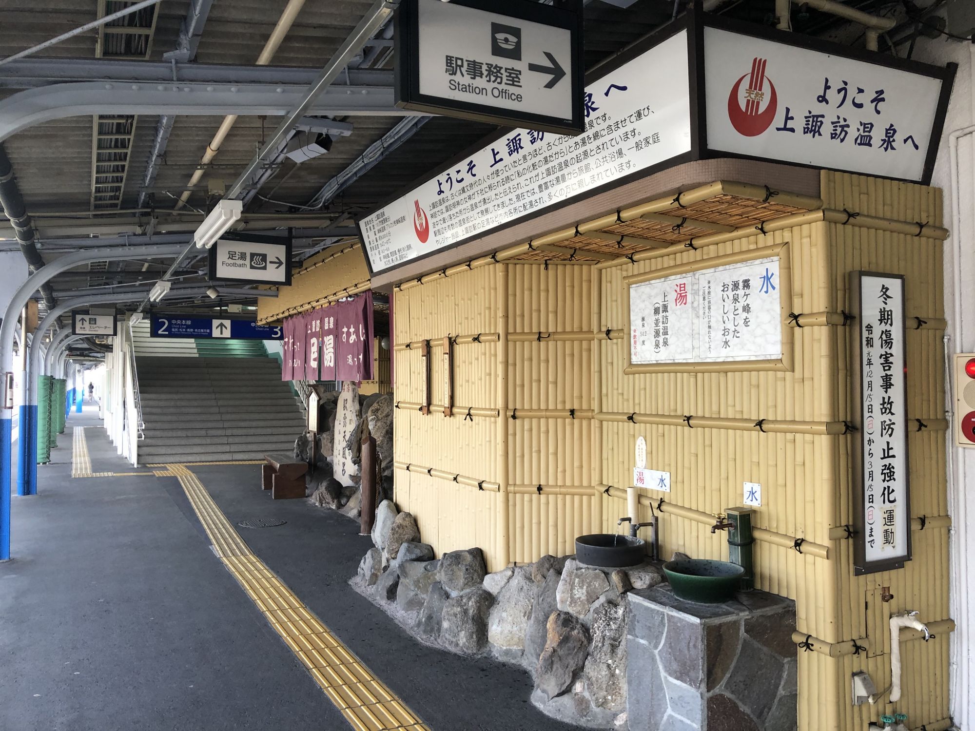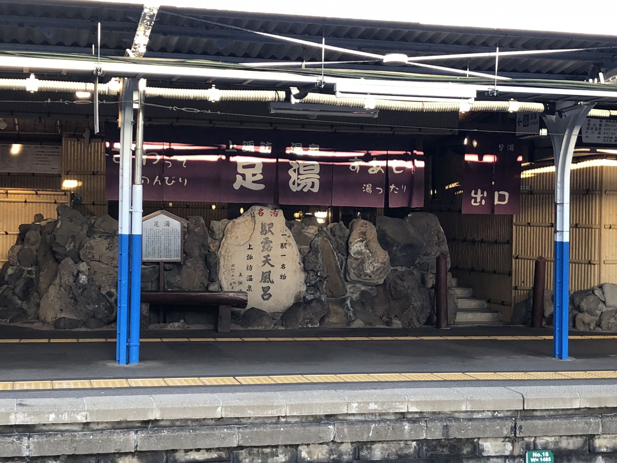而上諏訪站内,有一处免费的温泉足浴处,旅游后等车的时候,可以泡泡脚,消除