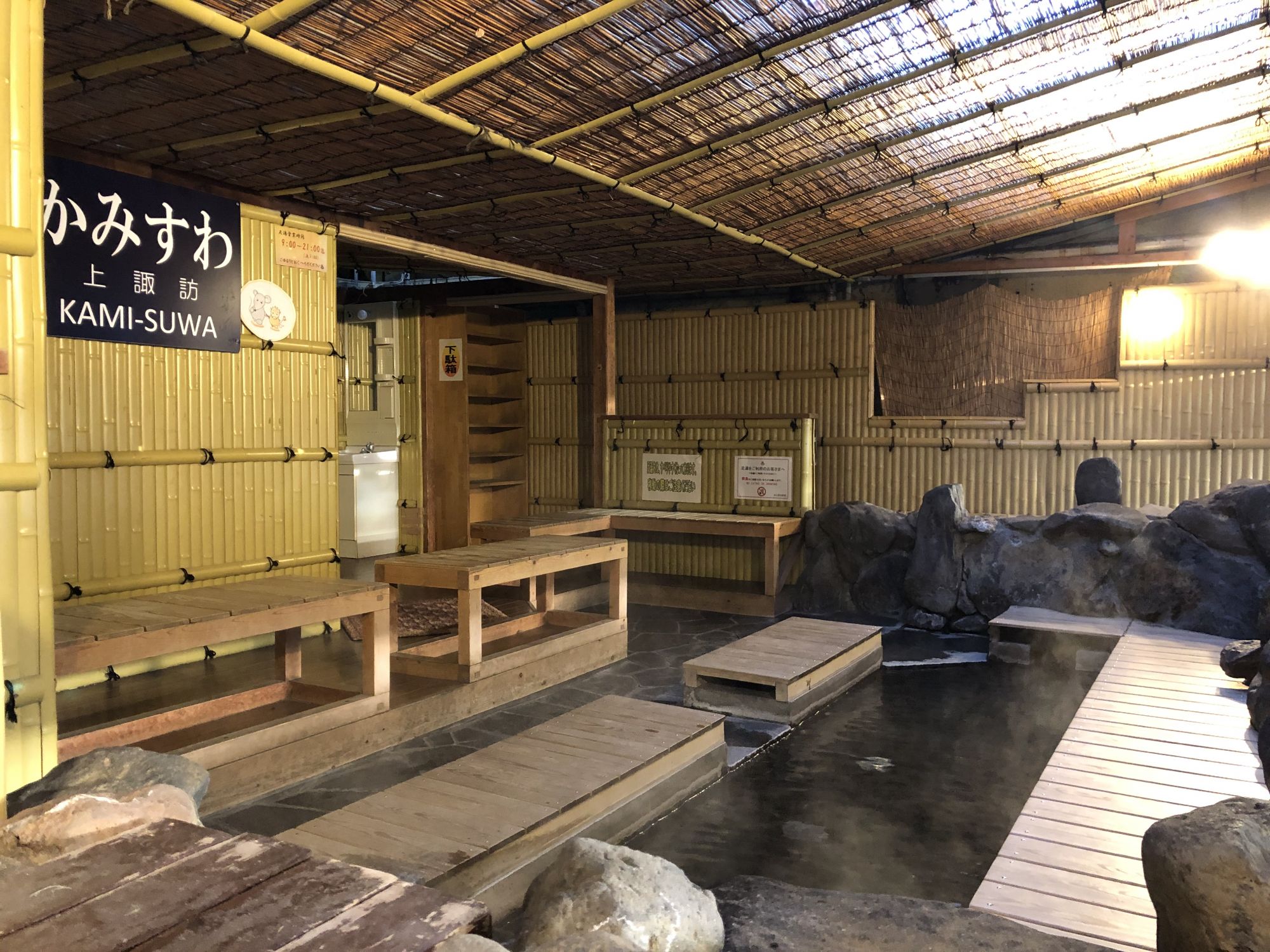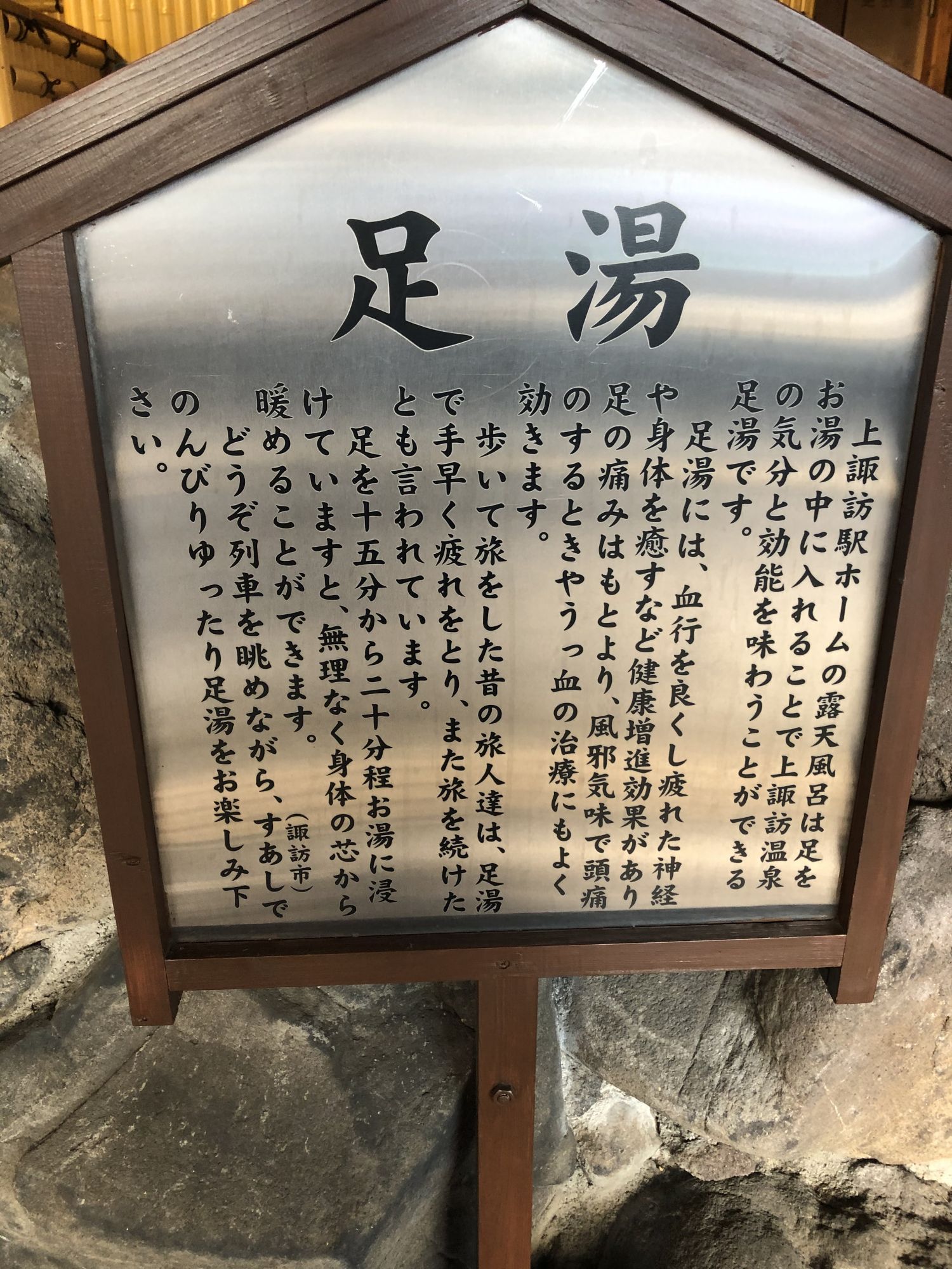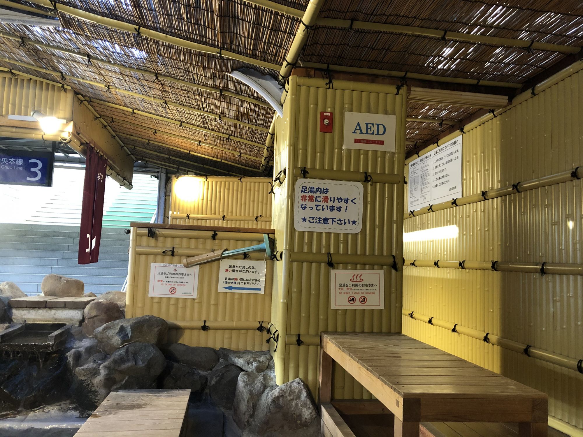 而上諏訪站内,有一处免费的温泉足浴处,旅游后等车的时候,可以泡泡脚,消除